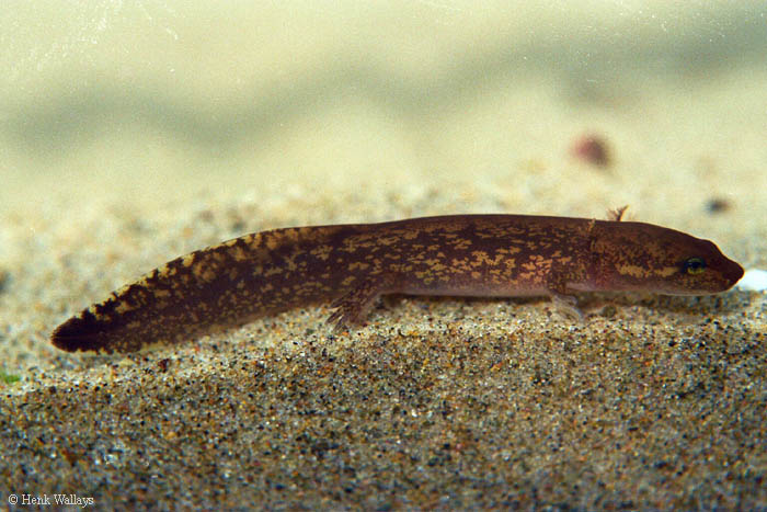 - Rhyacotriton olympicus.The distribution of this species is restricted to the Olympic Peninsula of Washington. Its distribution area has no contact zone with other Rhyacotriton species. This is the sole species that I have not (yet) been able to see in nature. The demarcation line between the dorsal and ventral coloration is wavy. The back and sides do not carry spots. The belly usually has large dark spots or mottling.