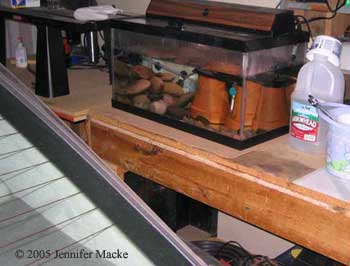 Another example of WINTER cooling. This tank was moved to the garage. With a submersible or canister filter, the tank will not freeze even if the air temperature dips briefly below freezing. However, there are some very cold climates where this would be too risky.
