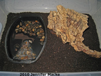 Morphs and juveniles are often VERY hydrophobic, which means that many breeders choose to raise them completely terrestrial. This method avoids the risk of drowning. Some people prefer to keep them in spacious, naturalistic tanks. The goal of such a tank is usually to provide a natural environment in which the tiny prey (usually springtails and isopods) will breed freely, providing food for the juveniles. This kind of set-up has the advantage of being almost self-maintaining and requiring very little attention. However, it makes keeping control of the juveniles very hard, so if problems arise with a given individual, you may miss it entirely and lose the animal. Additionally, when using soil, problems may occur if it gets ingested accidentally. Moss cover or leaf-litter usually helps prevent that.