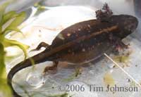 Parasites – I don't know of any confirmed cases of parasites, either external or internal, infecting larvae. Internal parasites are not expected in captive-bred caudates. However, when raising wild-caught larvae, it is possible. Also, parasites can be acquired in captivity, either from live food or from other animals.