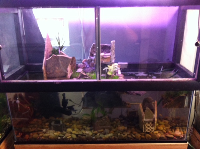 Not a soup, I have 4 60 gallon tanks, a 135, a 200, 3 10's, and 6 Micro terrariums. I also have my larger tanks equipped with a large terrestrial area on top. so that adds a great deal of space. So no joke and no soup. I am very serious about all of my animals. I run the best biological filtration as well as Ultraviolet filtration. I further more have a double minor in Water Science. I work for one of the largest water facilities in Los Angeles and have access to water testing treatments not available to most hobbyist. As an Agriculture major I am very aware of the responsibilities of careful animal conservation. But I do respect your concern, cheers...