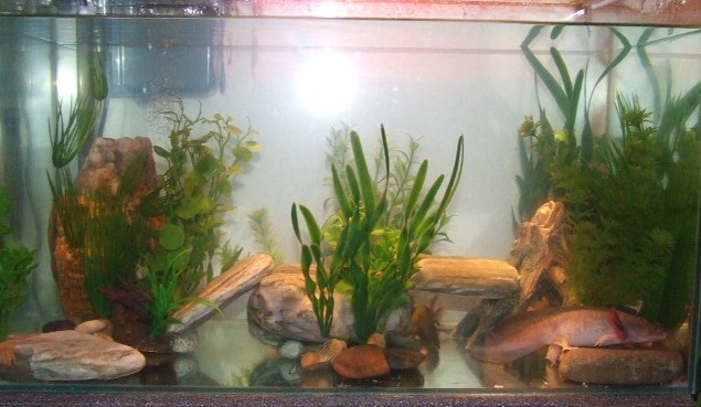 They access behind and through the tree stump on the right of the photos and around the rock on the left of the photo which is an amythest and crystal rock looks cool with the right light on it.