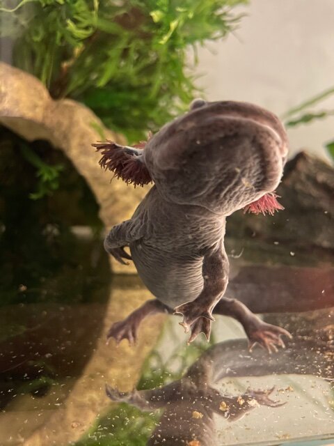 My black axo is always hungry but seems to be losing weight. He used to be really fat and healthy, but now, he's hungry all the time and he's getting thinner and thinner. He's also doing weird body shapes. Contorting himself in all weird positions, curling around and not looking all that comfortable in his skin. All water parameters are on-point. His tank buddy is very healthy and exhibiting normal eating behaviour. I need some advice.