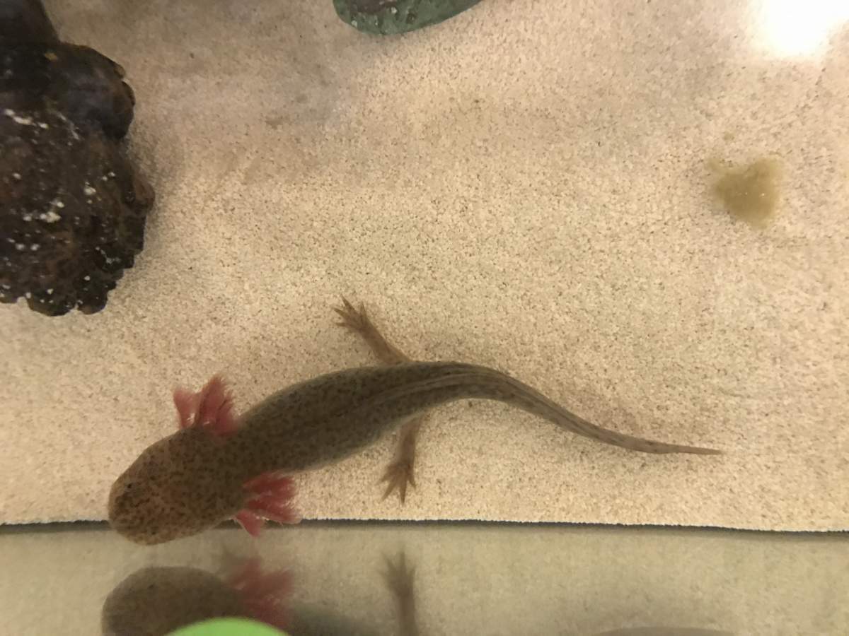 My axolotl is acting normal and is still happily eating but his gills have turned bright red and his skin has turned from a dark black/brown to a sandy yellow/brown. Is this just a genetic trait being expressed late or is he sick? Pics below.