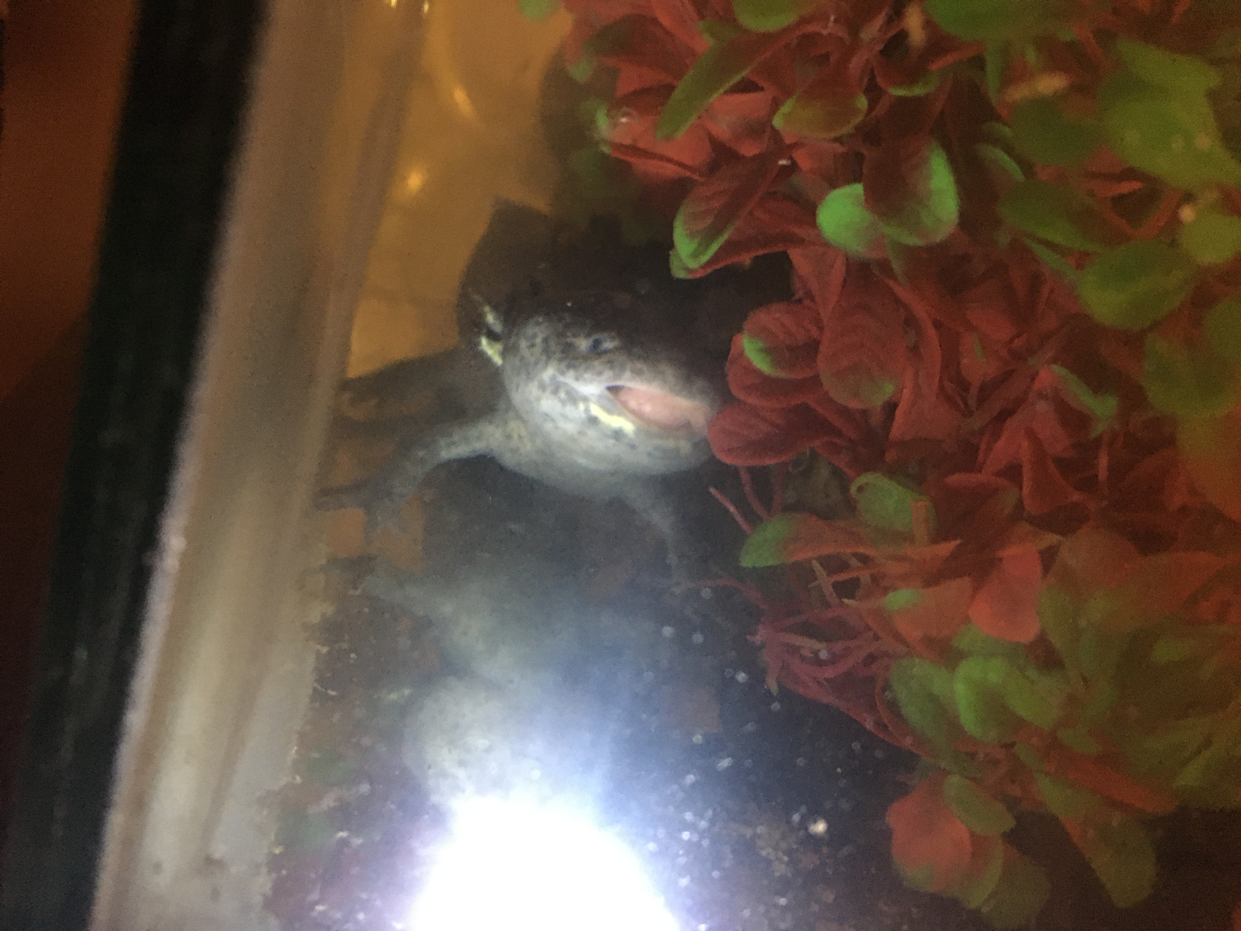 Miti, 3 year old male axolotl, has had a strange growth in his mouth. It popped up a couple months ago and didn’t seem like it was interfering with his life. I went away for 2 weeks and came back and it was significantly larger. Takes up most of his mouth. He still eats, doesn’t act stressed or sick, no symptoms. His tank mate, also a 3 year old male is perfectly healthy. I suspect that it’s an injury that overhealed he got trying to eat because his mouth is too small. Mouth deformity is result of inbreeding. He’s always struggled to eat food because of it. I have to be patient with him until he manages to get it in his mouth. It’s not different now. I’m just worried that if it keeps growing, he won’t be able to get food in at all.