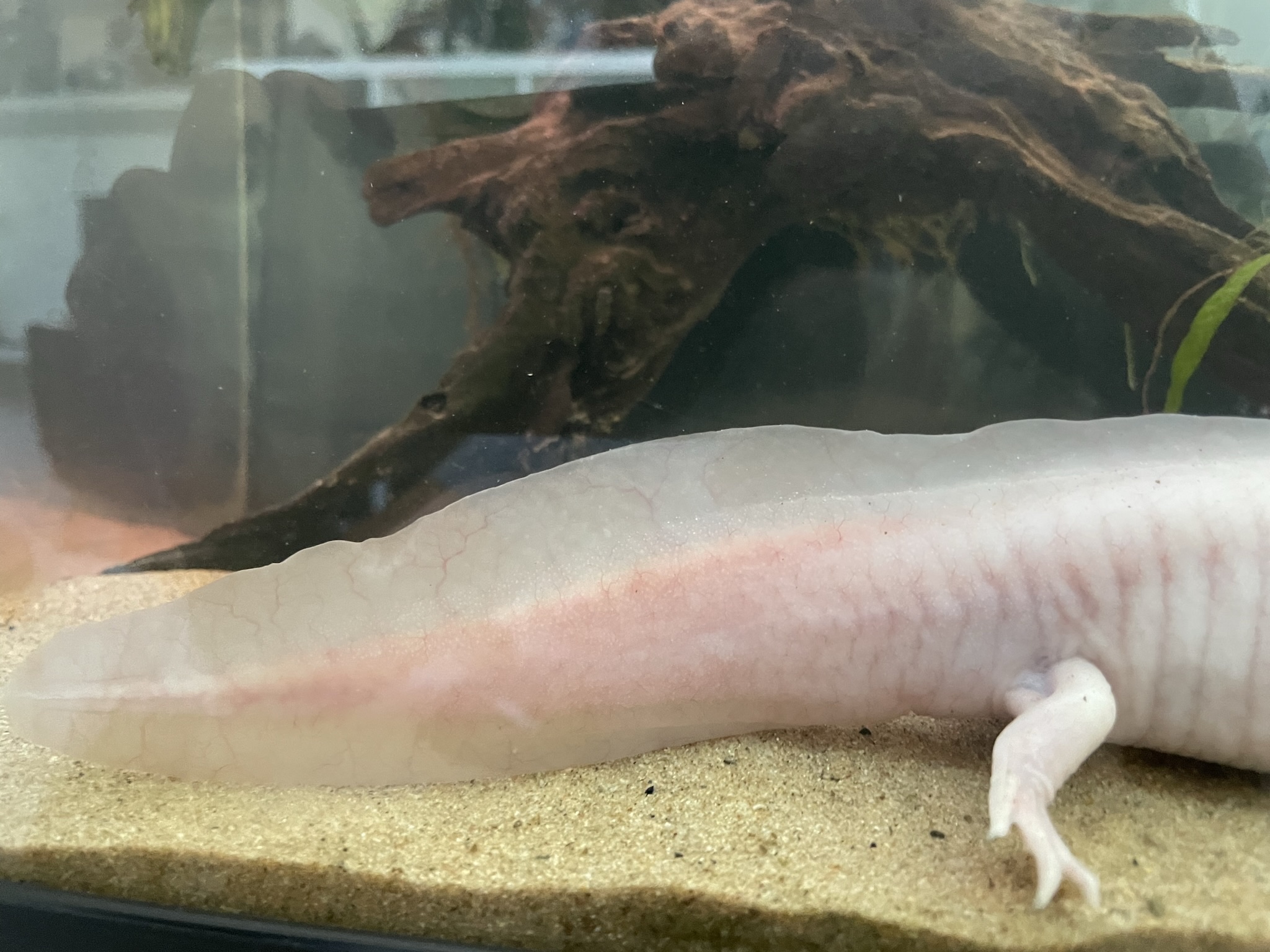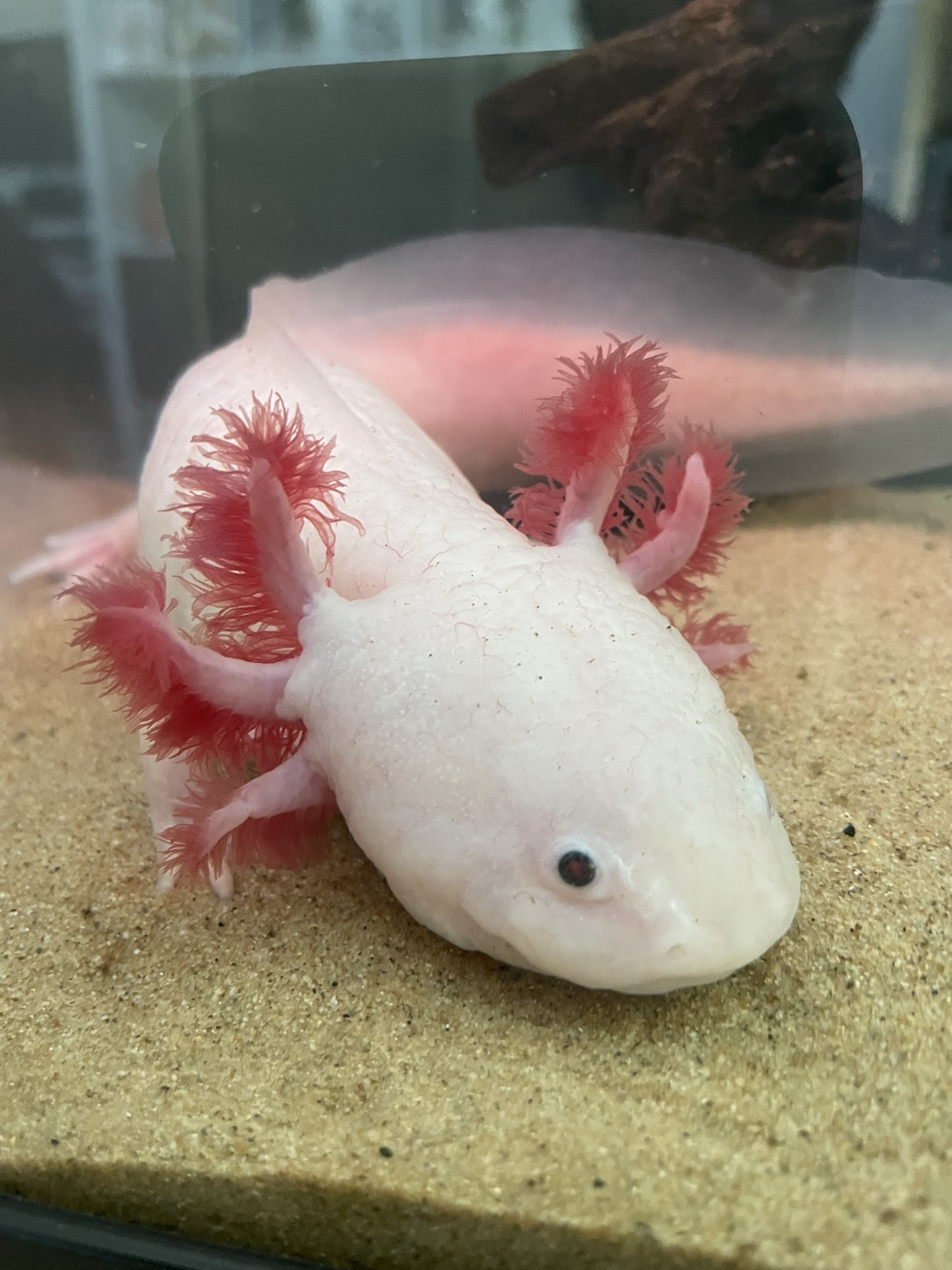 One of my Axolotls recently stopped eating and I'm getting worried. After we returned from Holiday 2 weeks back, temperature was on the high end (+/- 24 Celsius), but the last 2 weeks I've kept it stable on +/- 20 degrees with a JBL cooler and frozen water bottles . Quality of the water is ok. Unfortunately, one of my axolotlts refuses to eat. In the beginning she (or he?) was still trying to and took the pellets and earth worms, but she always spat it out immediately. Now she even doesn't try to eat it. If I put a worm in front of her, she just turns around and swims away. This is now almost ongoing for 2 weeks, so I'm getting really worried about her. I don't see anything abnormal on her, so I don't really have any idea what is wrong.