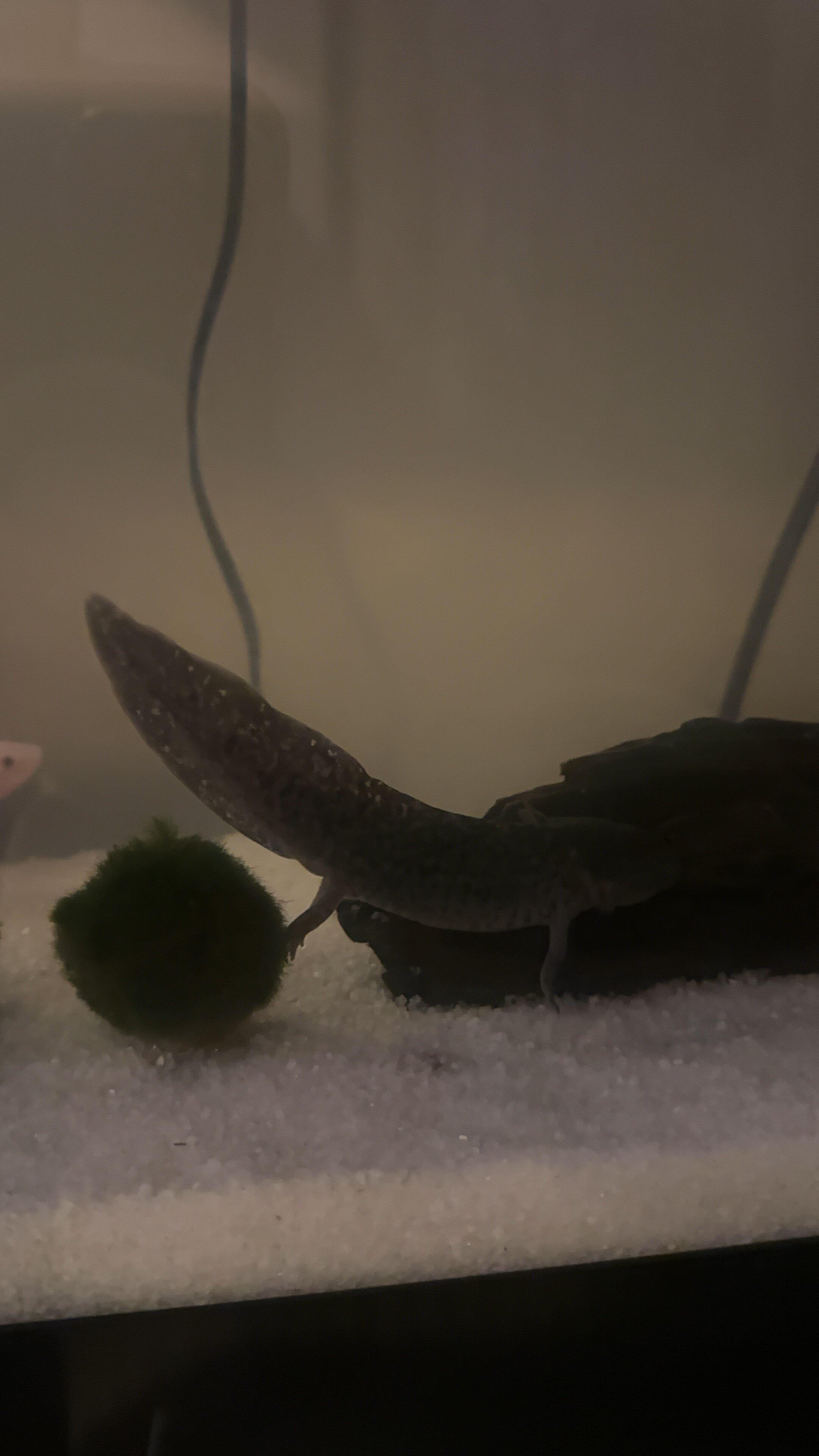 My melanoid axolotl has a problem probably astringe. Its back legs and tail is up, it can't block this. He is trying to dive but automatic legs and tail rise. He swam all day, never stopped. He is not happy, fluttering. I made massage to his belly, he farted but still legs rise..