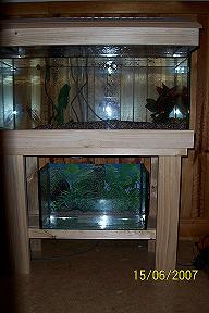 Well I have taken a pic of the tank I started my axie in...very small, and the new one. Since he has been in his new home he is so much happier, and healthier. Thought id share. :D