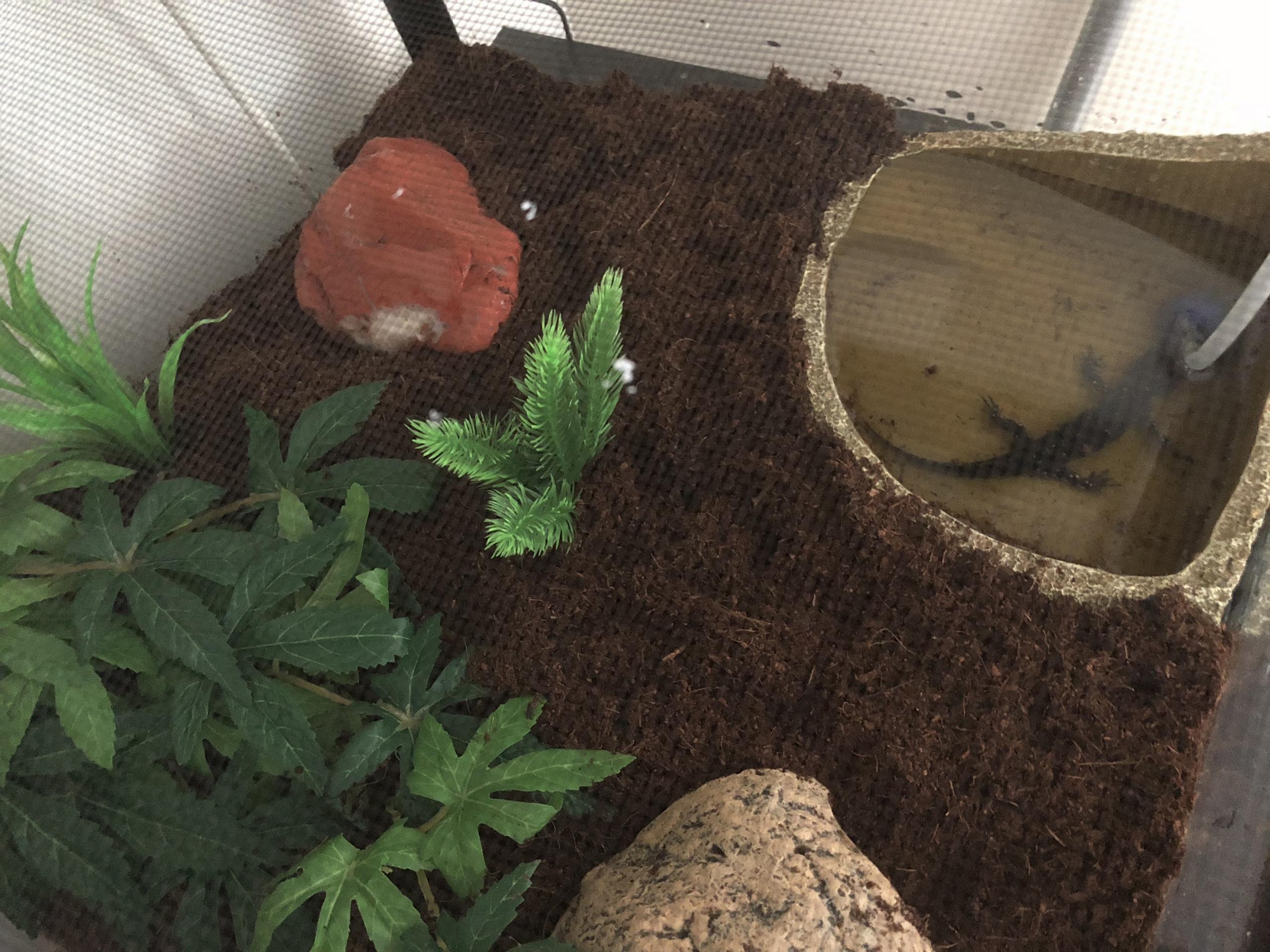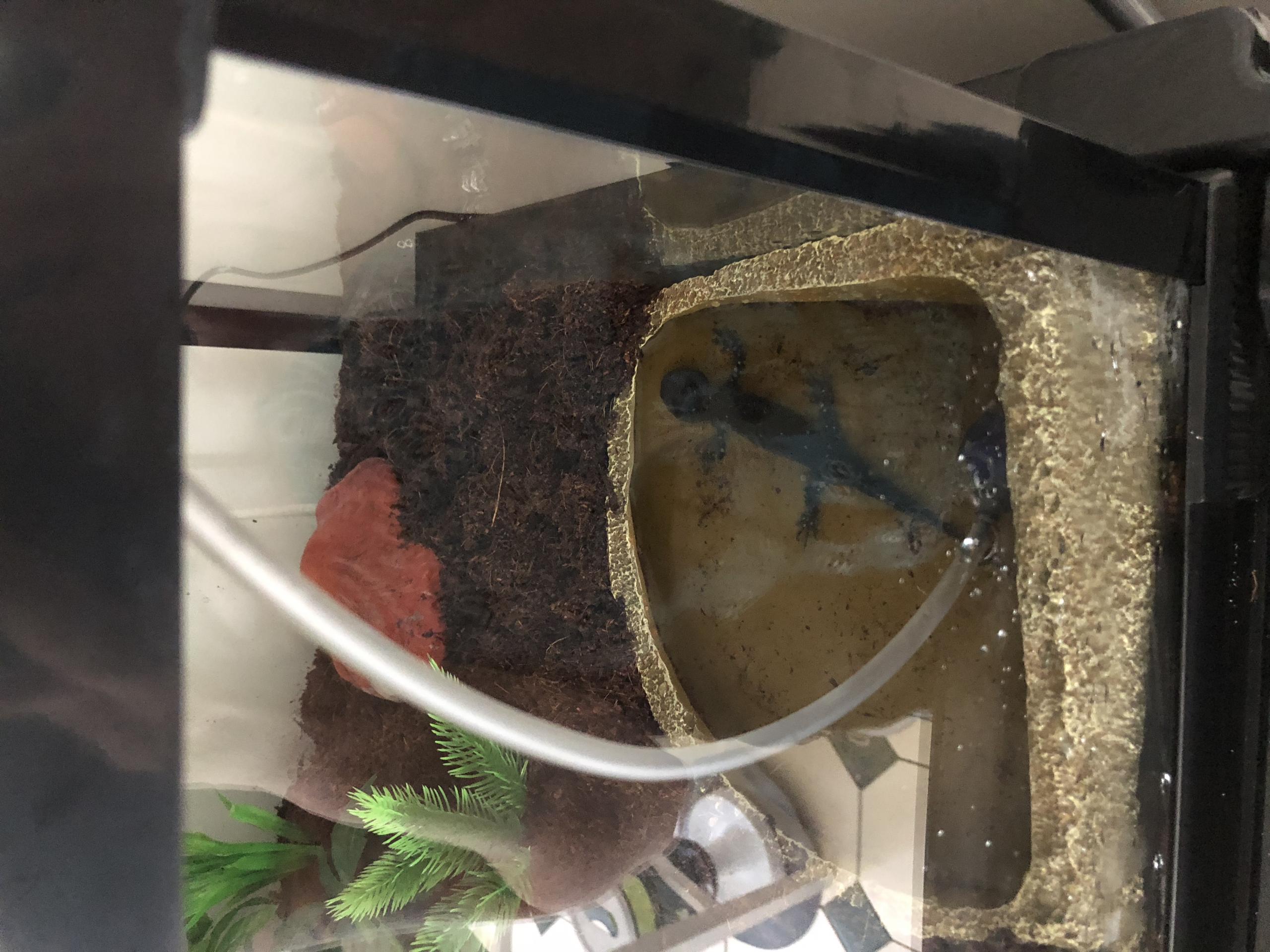 This is now his enclosure I have coco peate on the floor and a pond for him that’s about an inch deep. I’d this adequate?