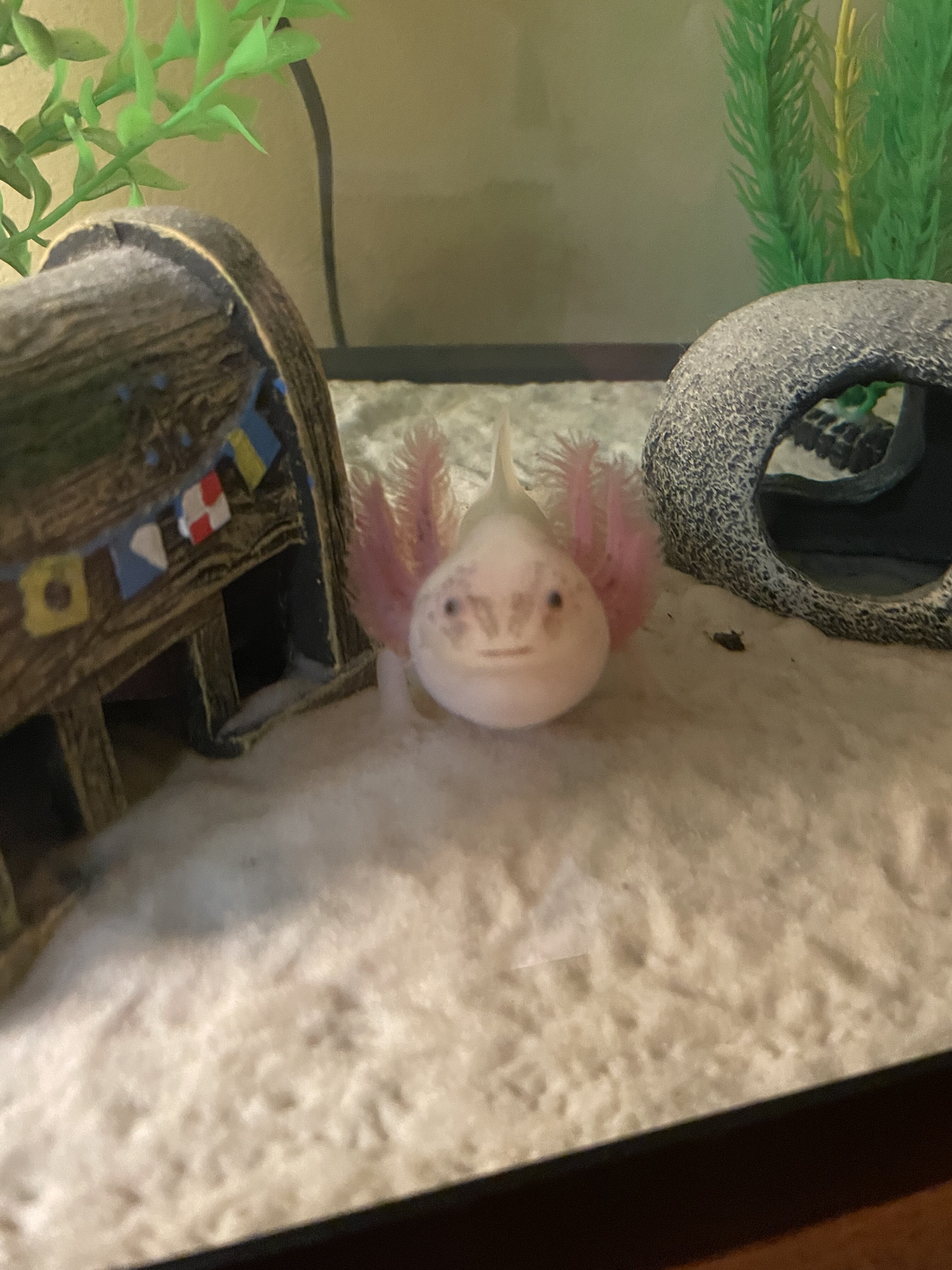 We have an axie that is about 3 months old, and something weird is going on ... I came home from work last night to find him looking very strange. Could this be from bad water quality? We have been struggling with the ammonia level a little bit ... We took him out, put him in fresh water, did a major water change (about 50%), and now he seems better ... just want to know if anyone else has seen this. Any advice?