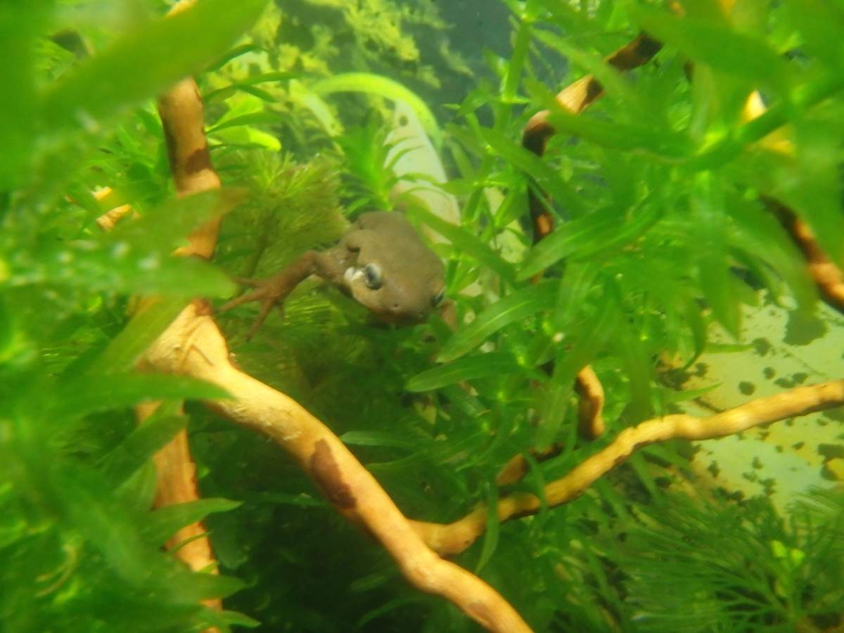My tank is pretty well planted and the elodea grew up and over the corkbark raft so he had some cover. He stayed up there for a few months before venturing into the tank and he hasn't used the raft since he went aquatic.