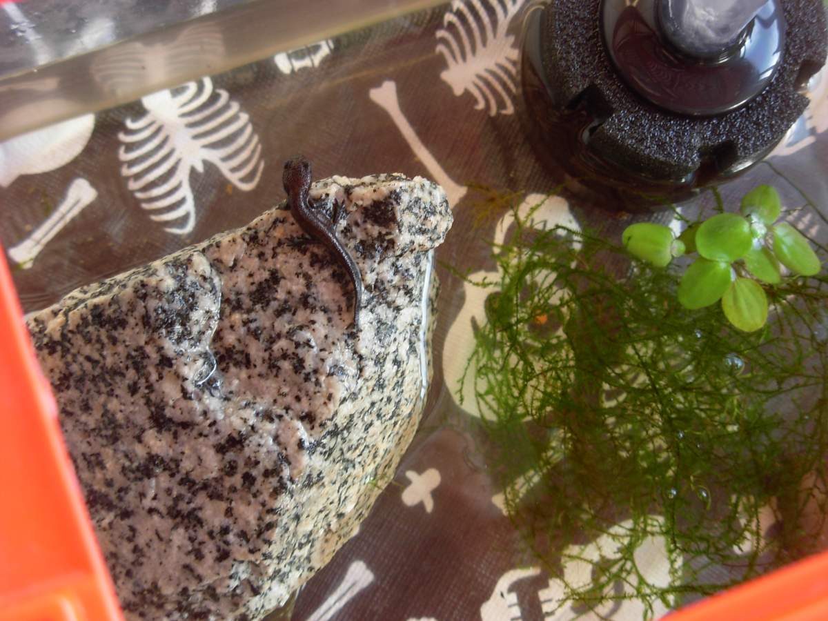 However, I'm not sure what species the little guys are or how close to morphing. All I know is that they are some type of cynops and that they have been accepting frozen bloodworms. I've got a few pictures attached...the bigger of the larva is about 3.7 cm, the other is closer to 3. They've got pink little bellies with minimal markings.