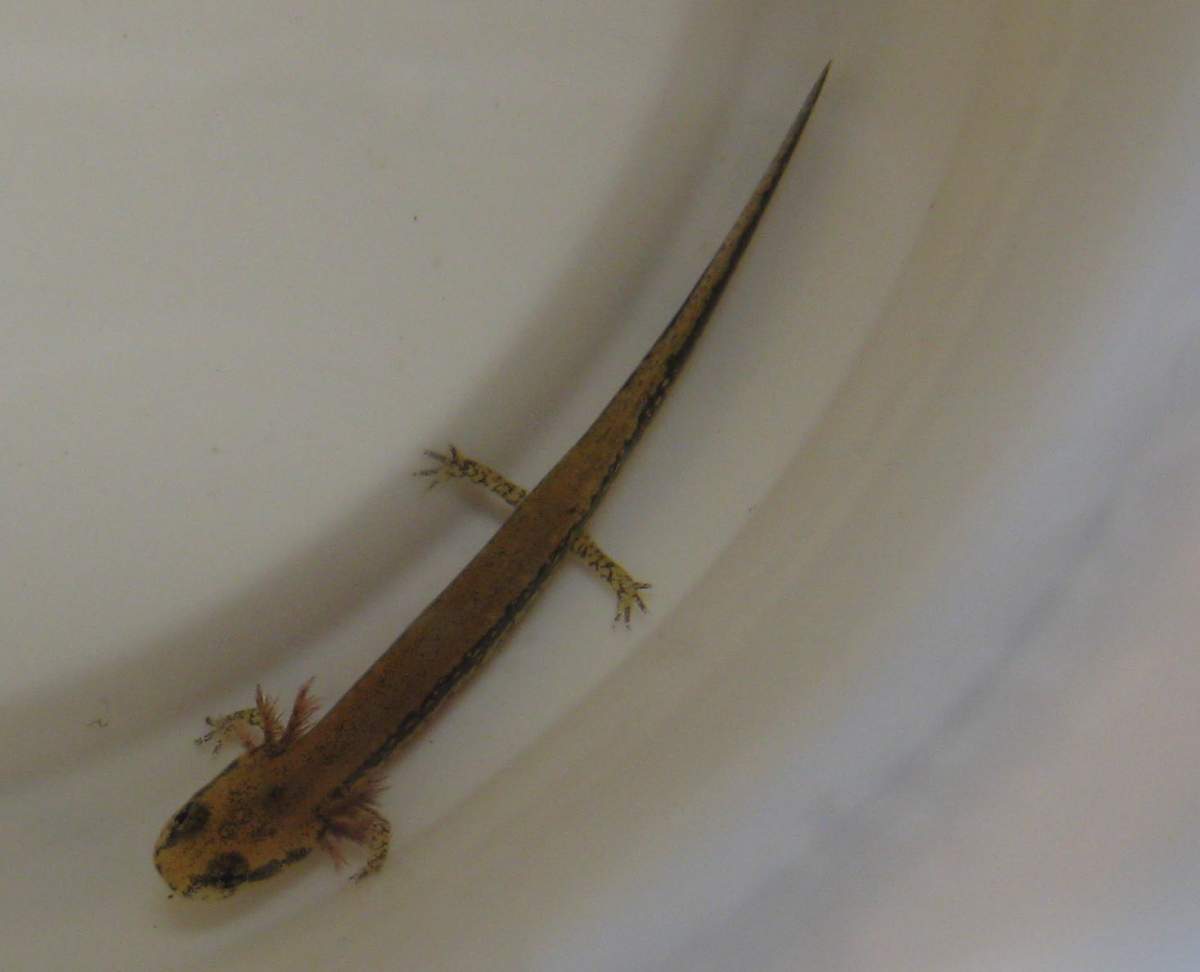 Has anyone seen D. auriculatus or D. conanti larvae? Any tips? Also, any idea how long till morph? From what I've read, it can take a few months, but a friend who raises salamanders says two months tops. This guy is about an inch from snout to tip of tail.