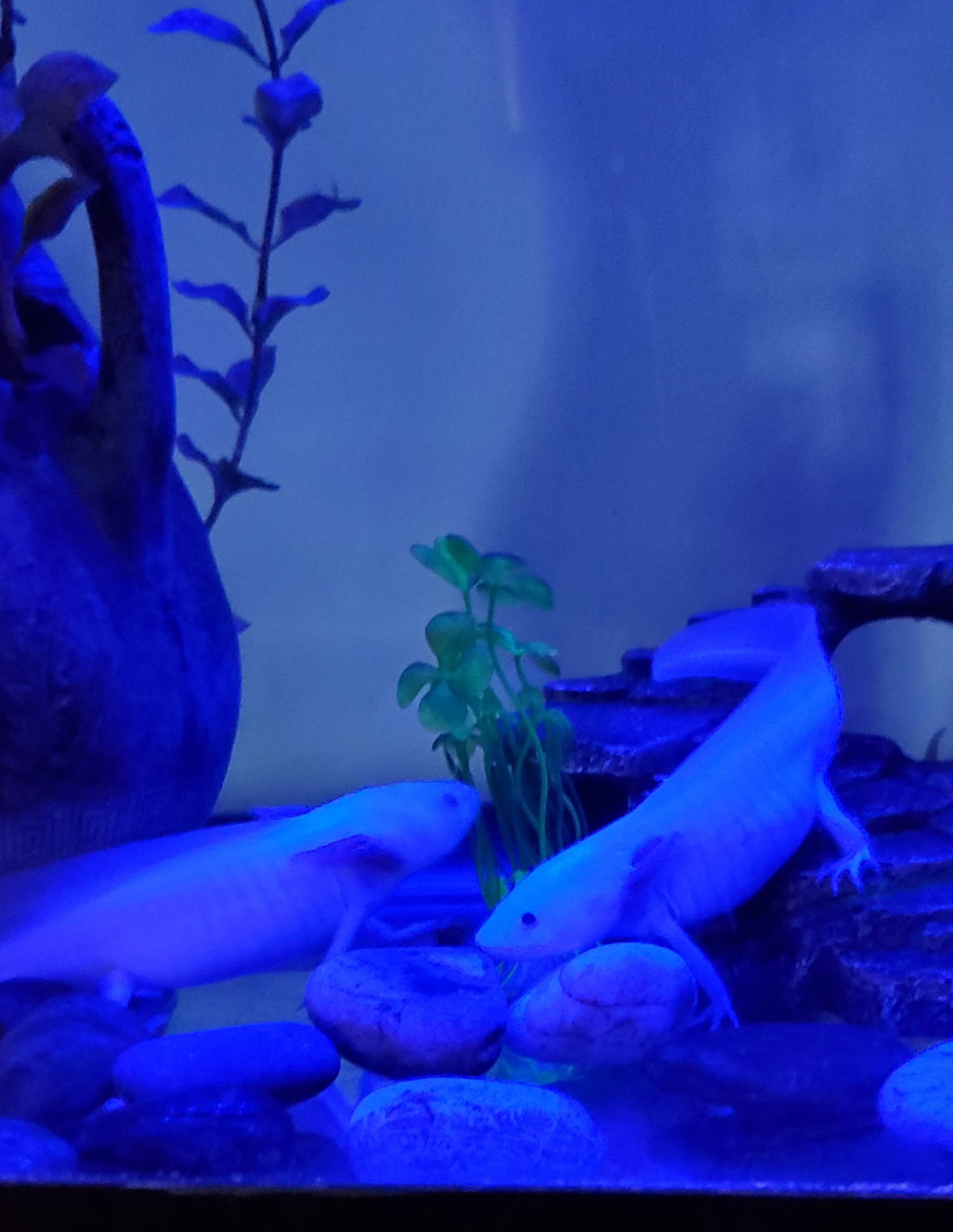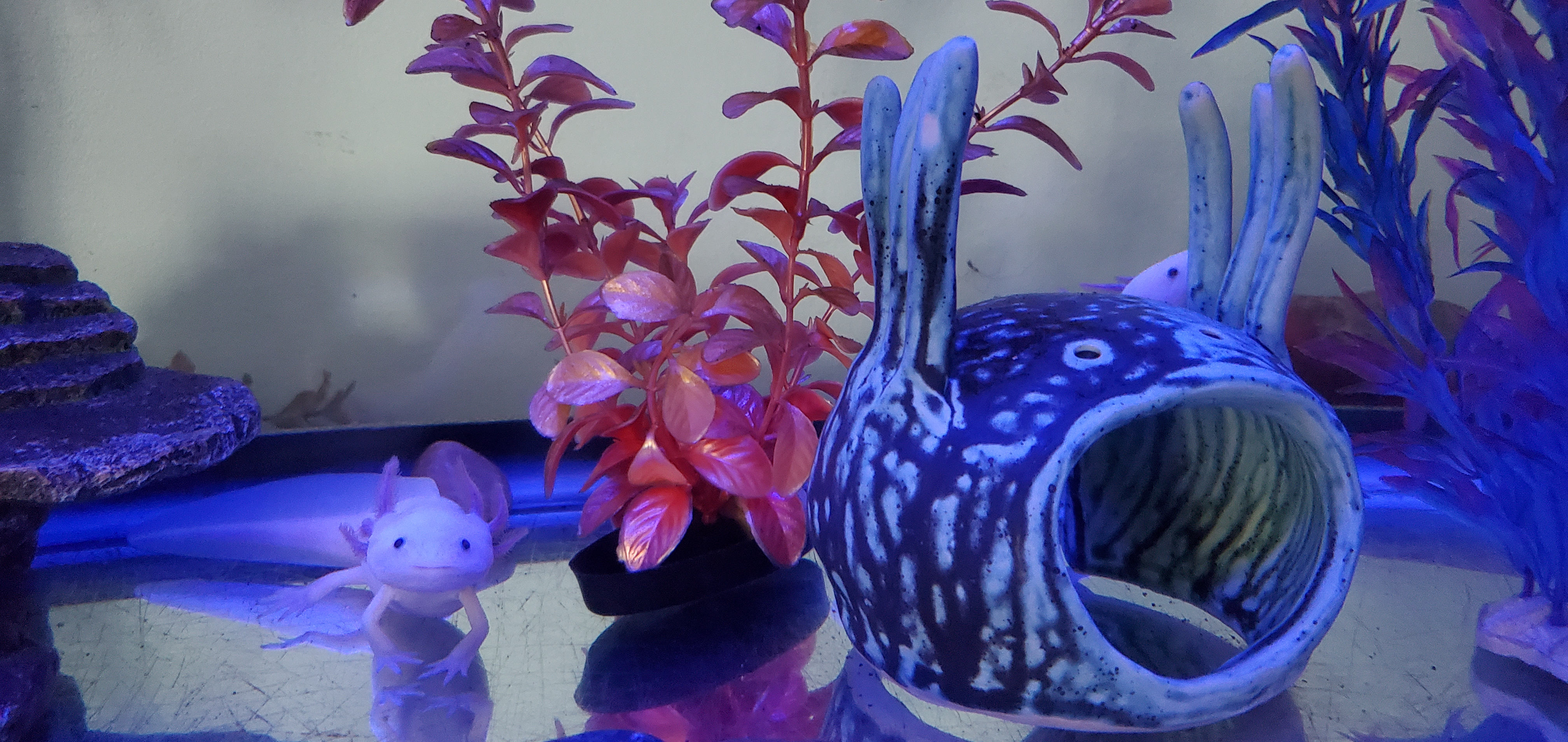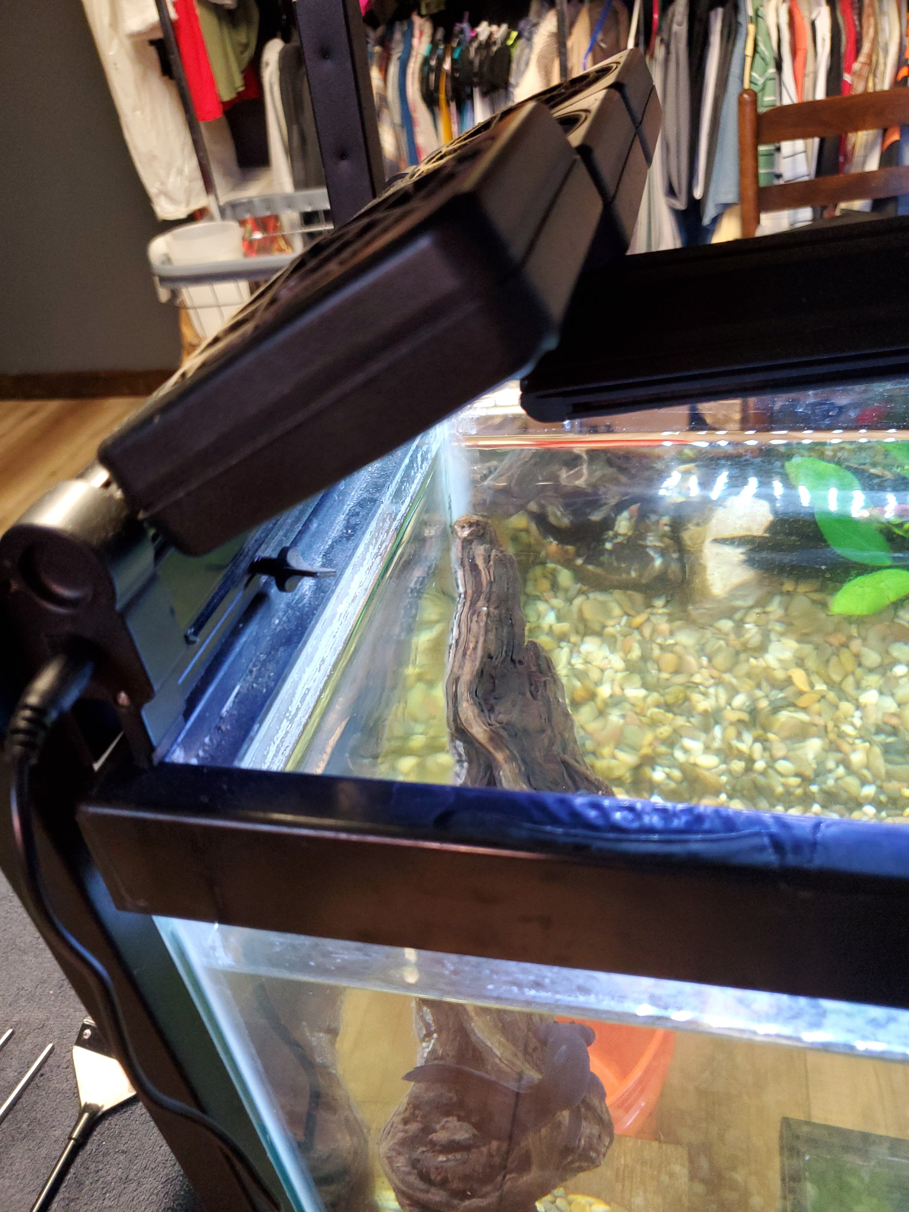 Hi =(*_*)= I'm Rosie. My Mama discovered me yesterday w my left middle gill badly curled and shortened. She quickly did a filter change, a larger than normal water change, fed me & Bad Ax my mate a red worm, and put almond leaves in my 55 G tank. Today I had some minor gas, I'm not very active (neither is Ax), and I'm flicking more than normal. Can anyone tell my Mama what they think could have happened, and if I will get better? Thanks aLotl.