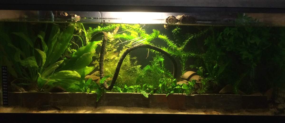 Looks pretty good for pyrrho's to me, Like you say, a few more plants that reach up to the top and you're done! Mine are defiantly happiest with some clear areas at the surface where they can swim up to breath without clambering through plants or having to spit out duckweed on their way back down! :)