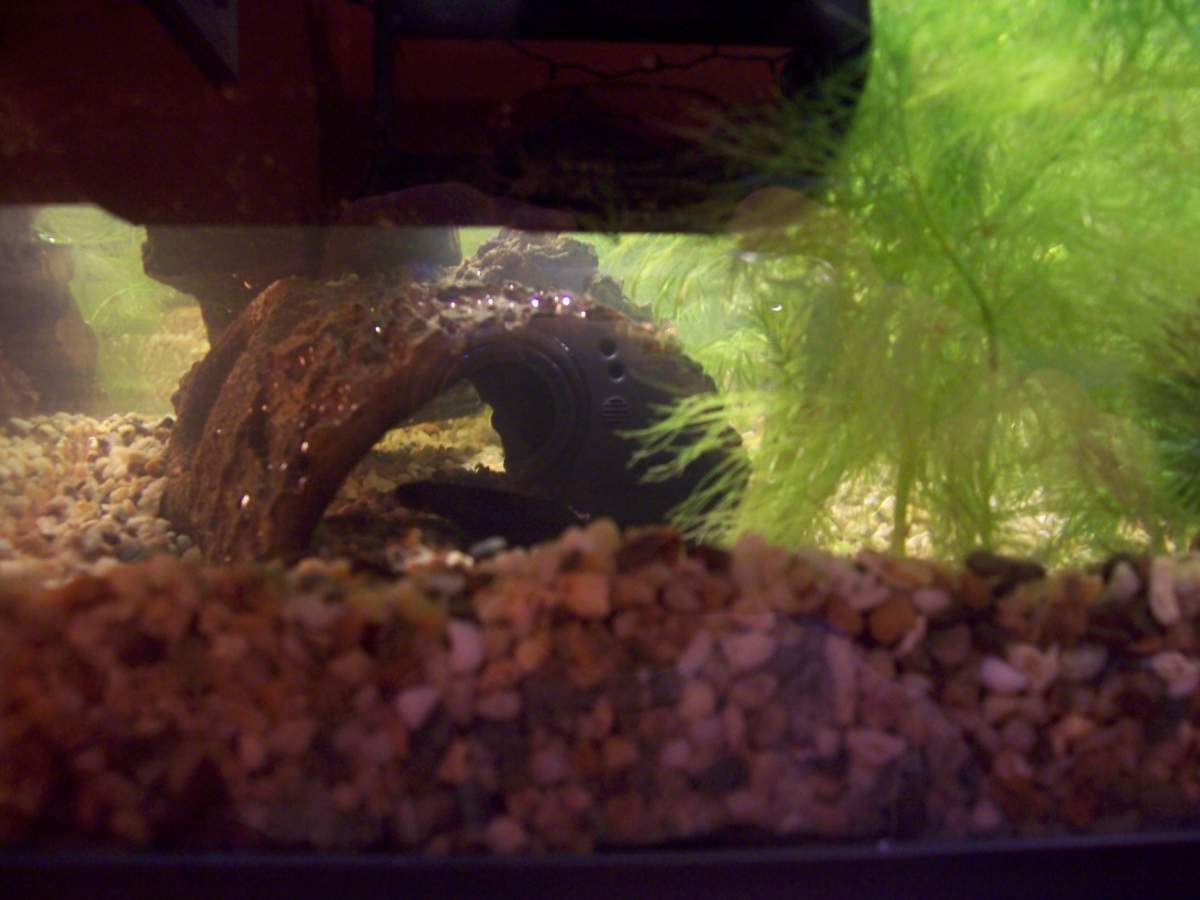 She seems to like hiding in the new log that I put in and inside the trunk of the tree. This morning I couldn't find her for a few hours, took the tree out and flushed it, out she popped. xD