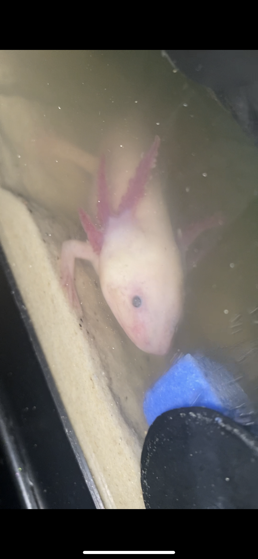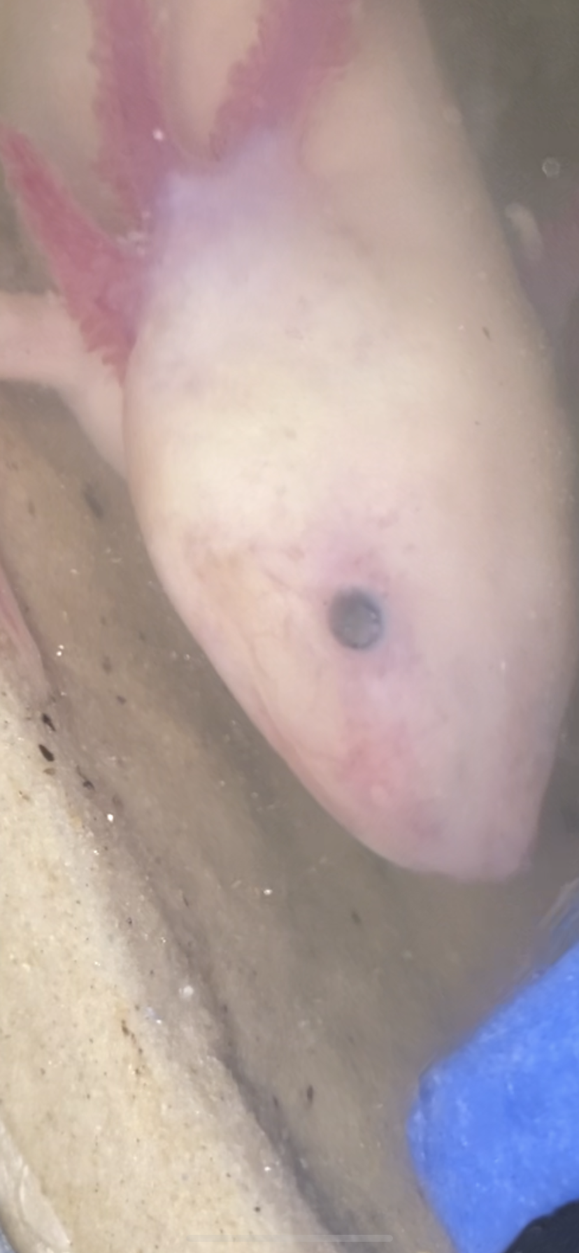 I recently placed my axie Anya into her newly cycled tank about five days ago. We've transitioned from a bare bottom 20 gallon to a sand bottom. Today, I woke up and noticed there were these white tissue ends to her gill filaments. They are not cotton ball fuzzy like a fungal infection normally is but they are fairly prominent. I also feel as though there is a slight opaque film on her eyes (not covering them entirely, just a little bit). I also can't tell if her skin appears pinkish? It's always had a very faint pink hue but im concerned this could be ammonia. Her head appears to start twitching on occasion ( ive seen her do it twice now).