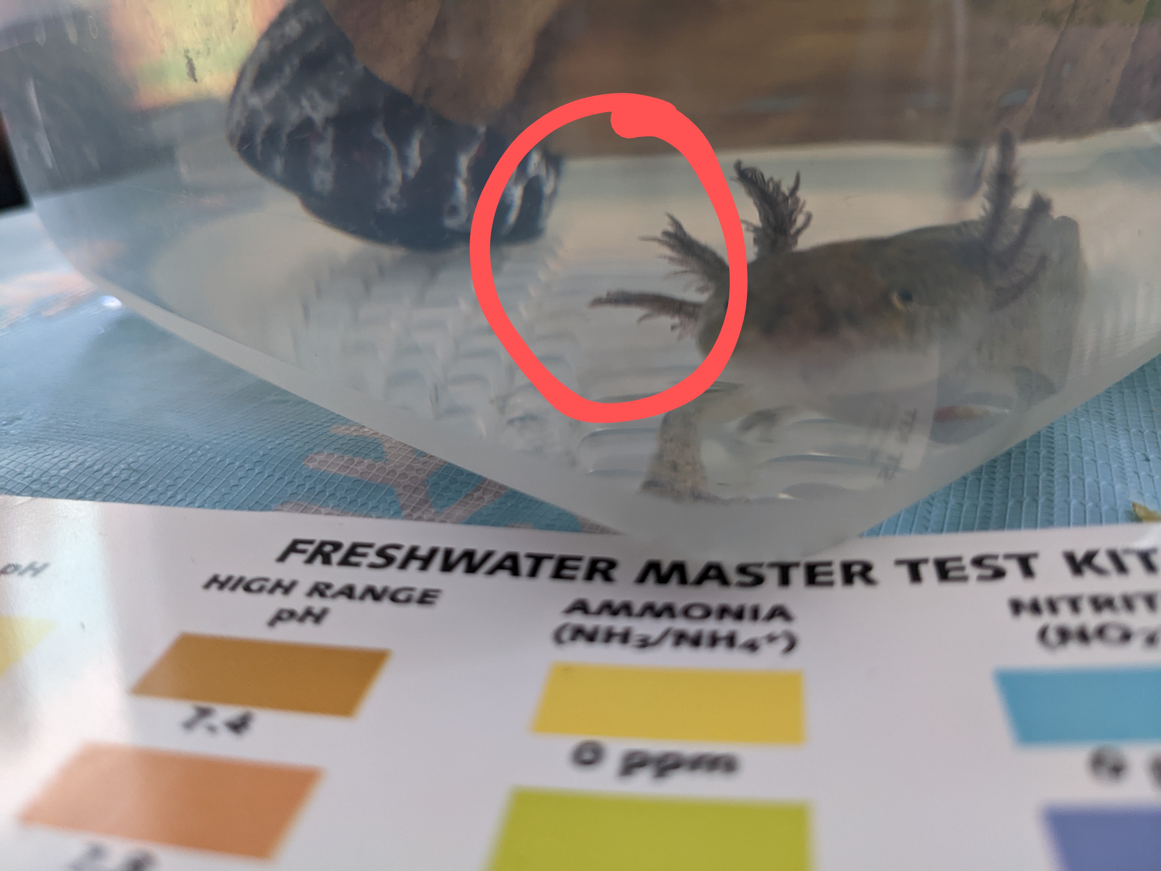 So I've had this 3.5 inch approx axolotl less than a week. He eats ( Well) , he poops ( they huge) , he's tubed with a sponge filter which he climbs all over. So I know he's not 'sick' - he's tubed mostly so I can keep a close eye on him because he came from not ideal conditions and he's a wee fella . He's clearly Gill nipped - I donno when and his gills look better everyday since I got him