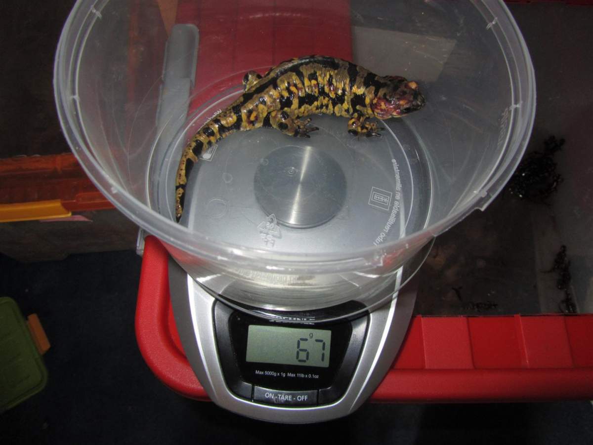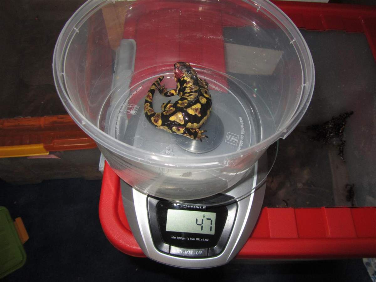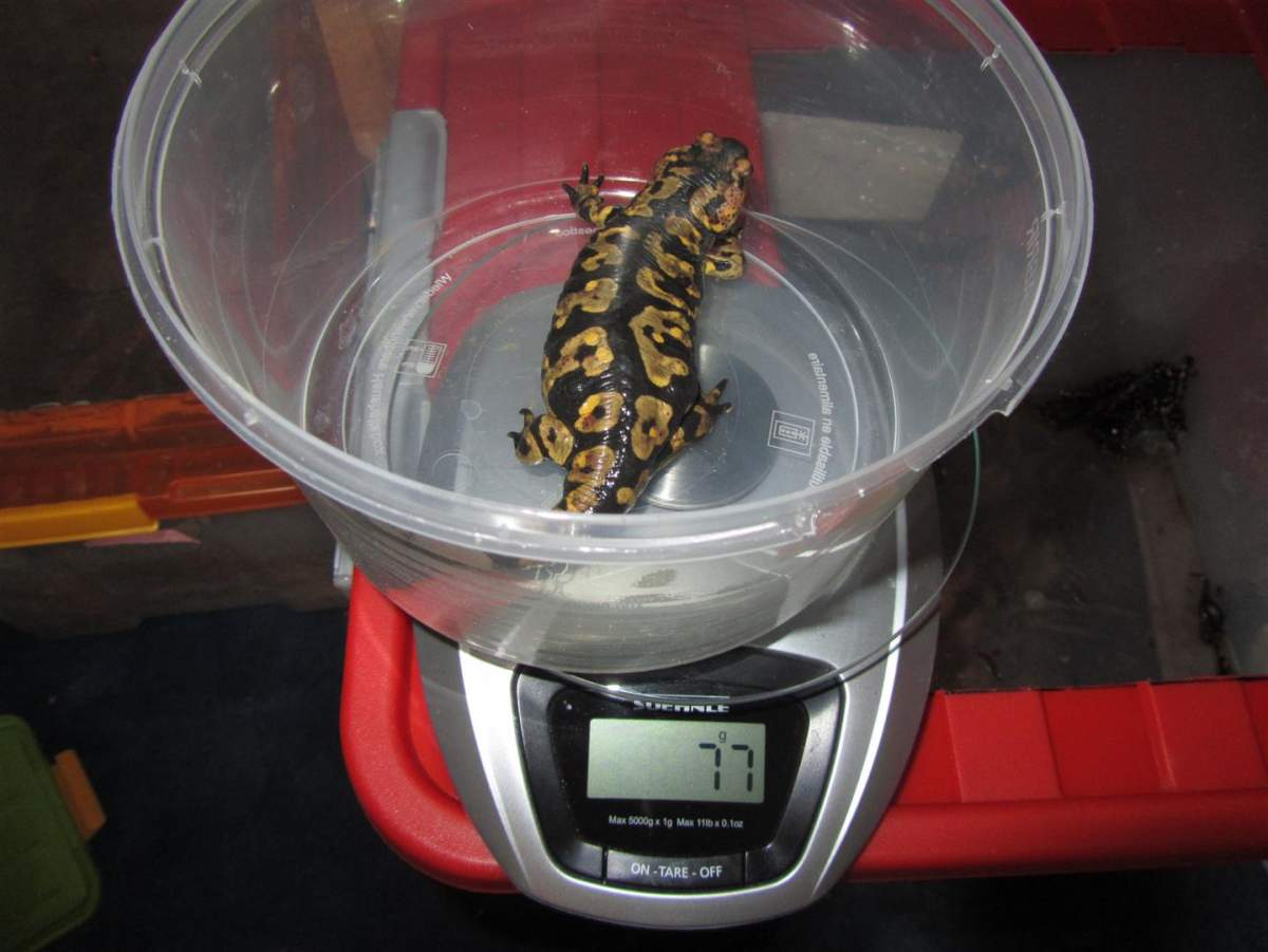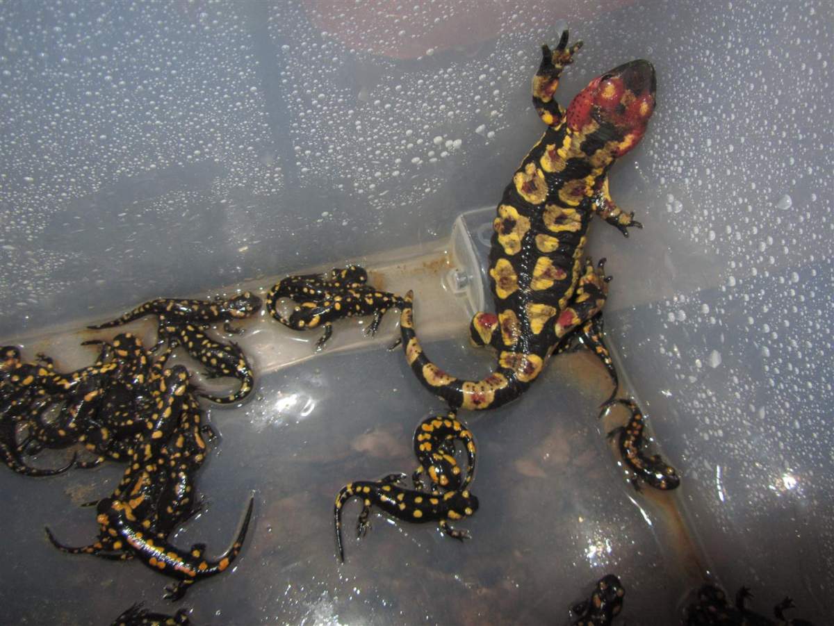 I got 2008 freshly metamorphosed very small salamander and they bred for the first time on 20 October 2012, than the first larvae was born, and so they now look: beautiful,