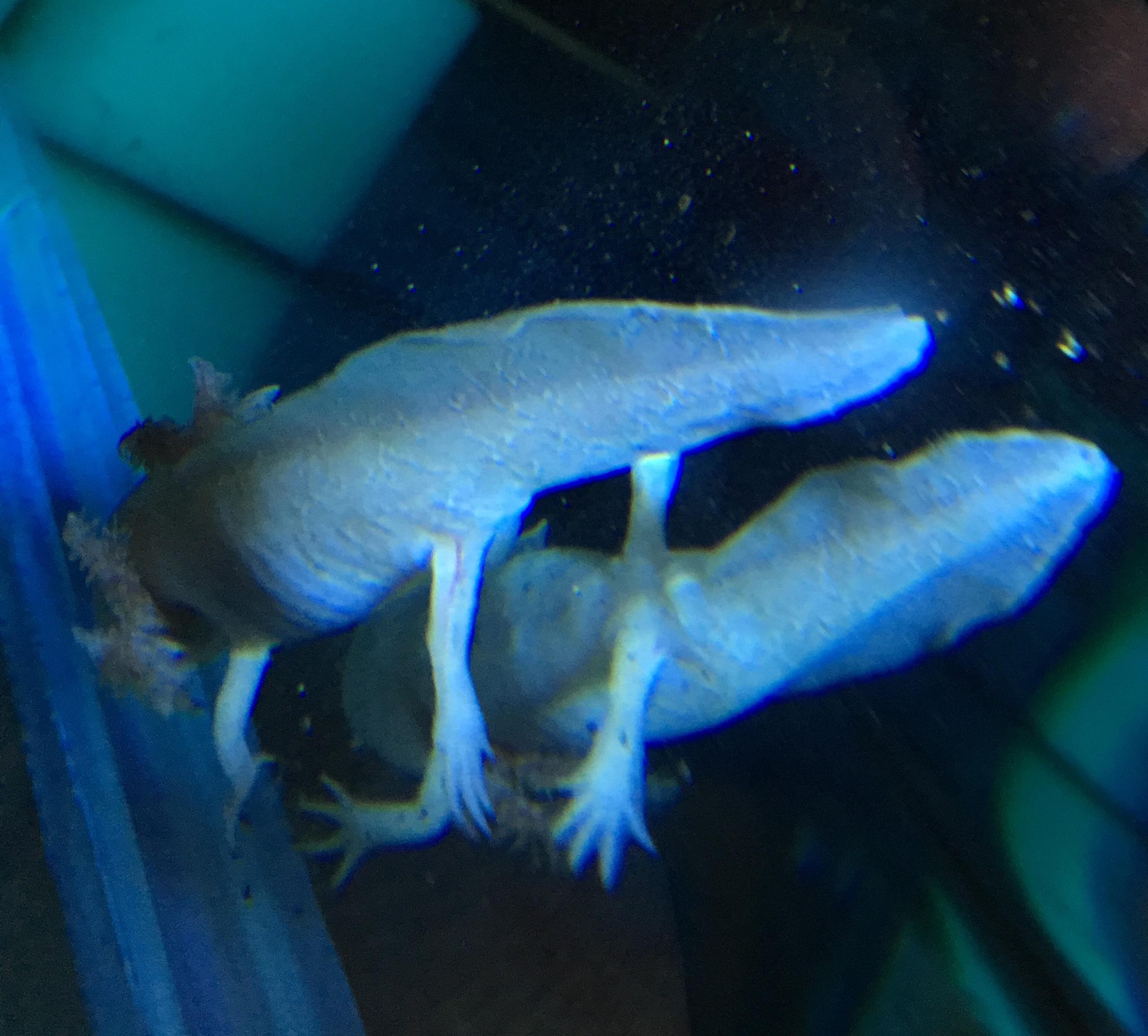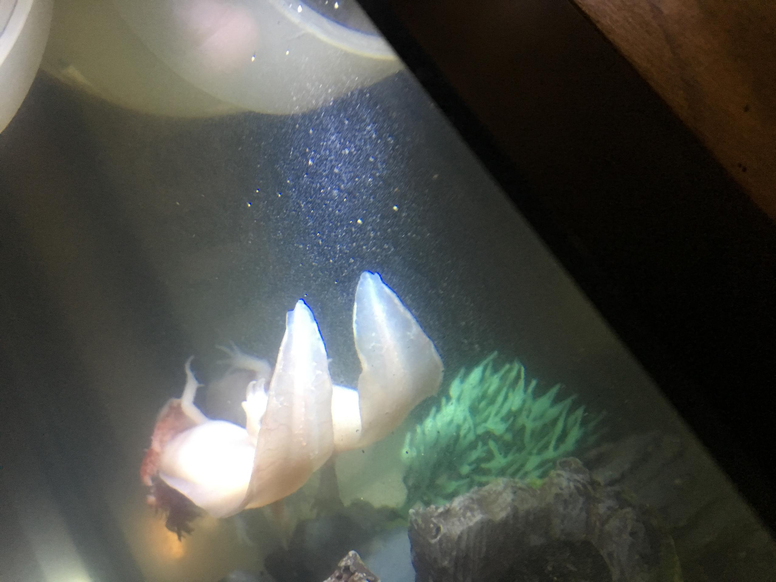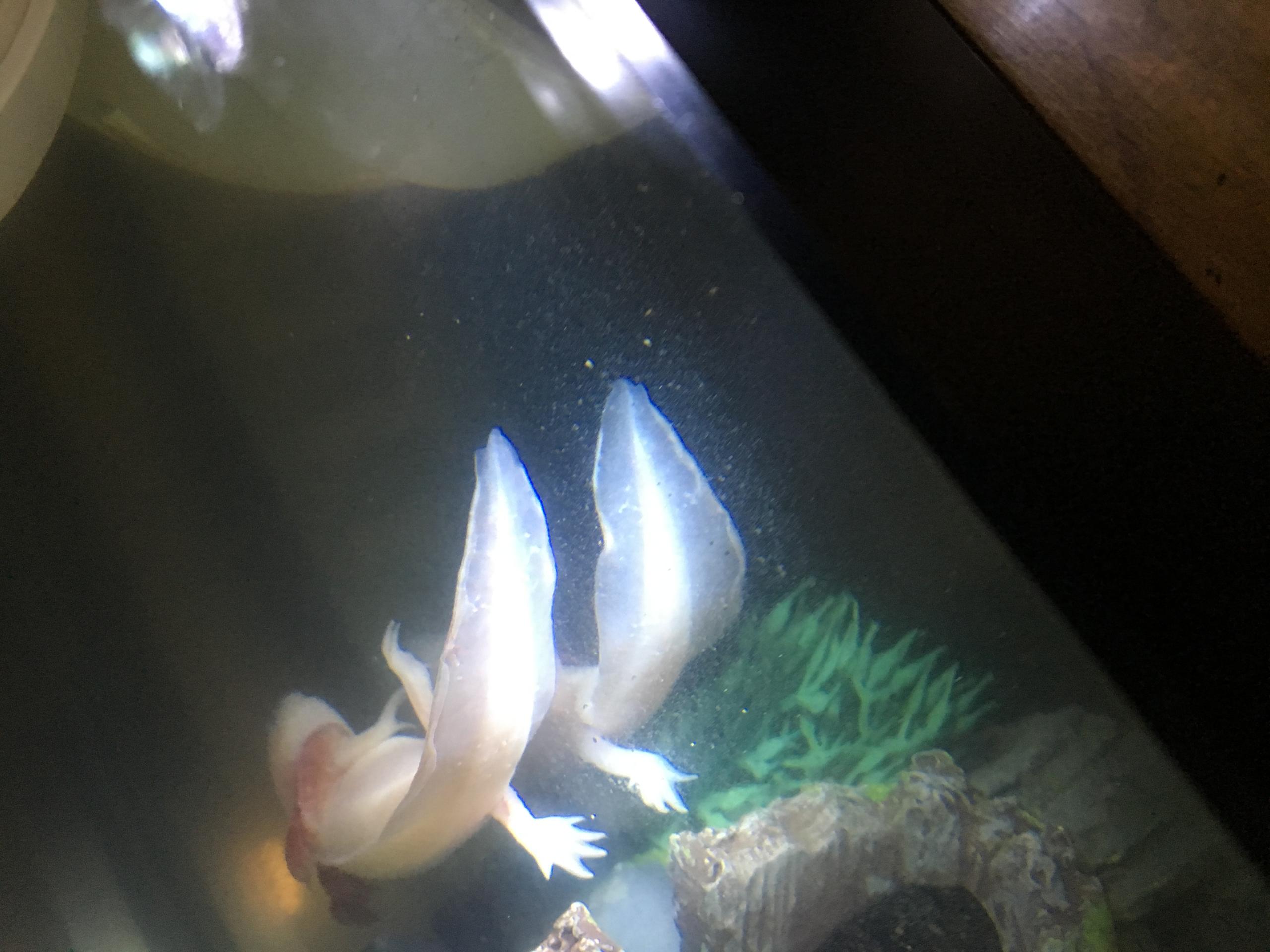 About a week ago my axolotl started eating less. Today I noticed he has weird spots on his tail I didn’t see before. He is like 3-4 months had him like a month. Water parameters are fine and temp is like 64-66 f