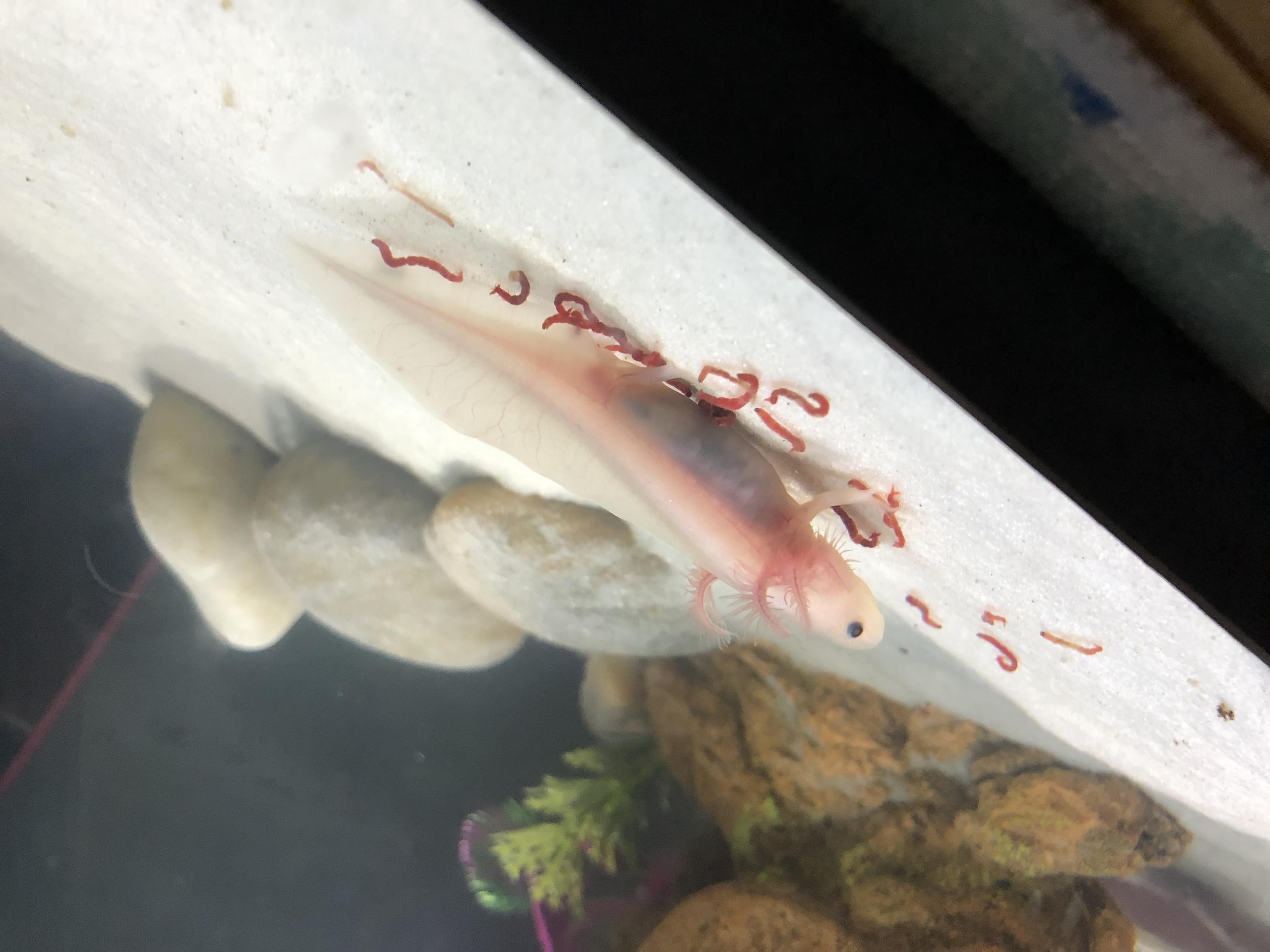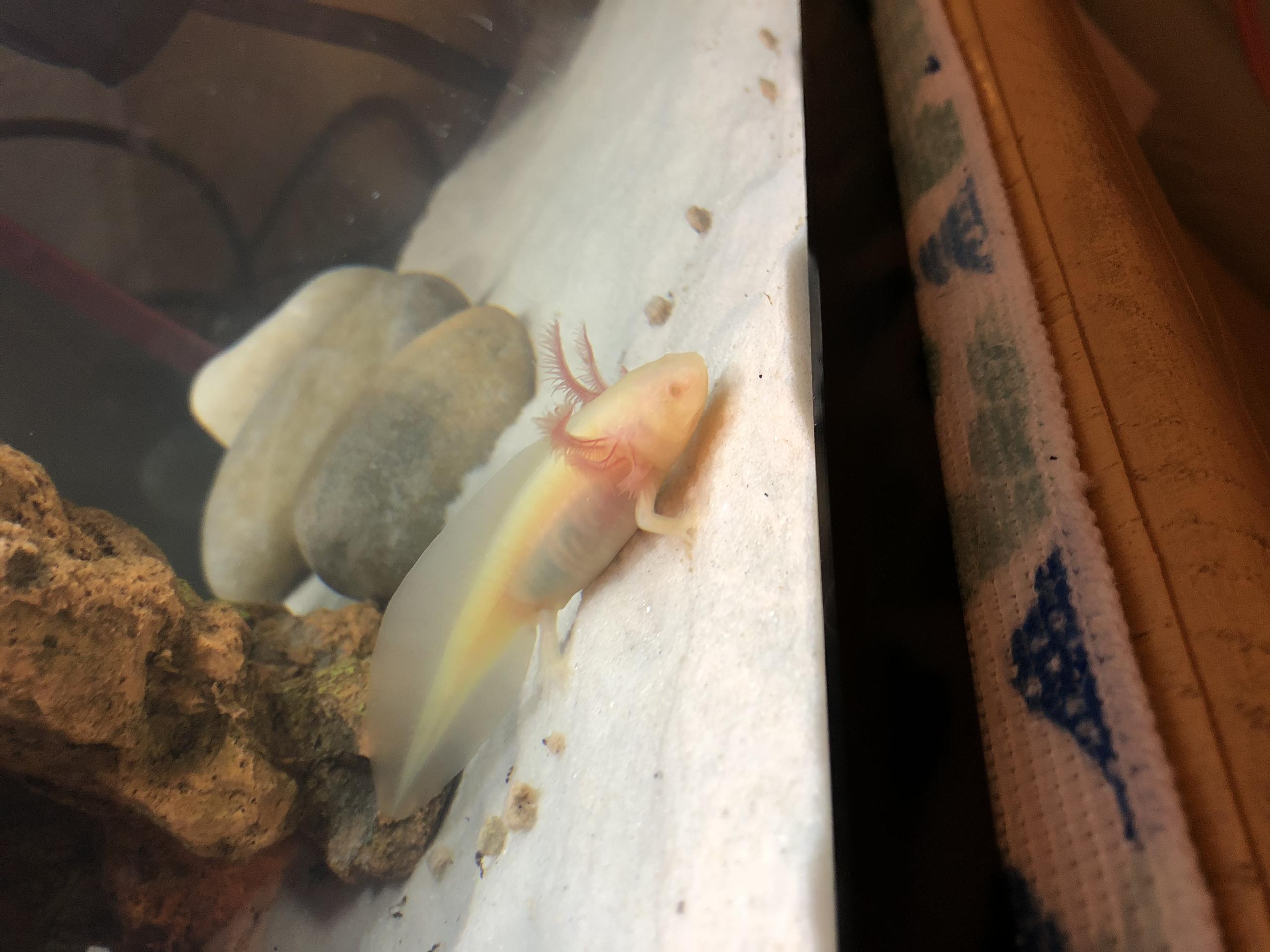 Hello, all! I recently got 2 little axies! Yesterday morning, I noticed their gills being very curled and as a new axolotl owner, it concerns me!! So I have them in a 10 gallon aquarium right now. The water temp is 68-70 degrees (I’ve been trying to lower it with a small fan but it only took it down 2 degrees... ) They have an in-tank filter that I’ve tied a bath loofah to and it does a great job of cutting down water flow. I’ve tested the water and the alkalinity is a bit high so I’ll need to get something to bring that down asap. I’ve had them for about 3 days now and they’re eating great!. Please let me know what you think!! I’ve added pictures of the two!