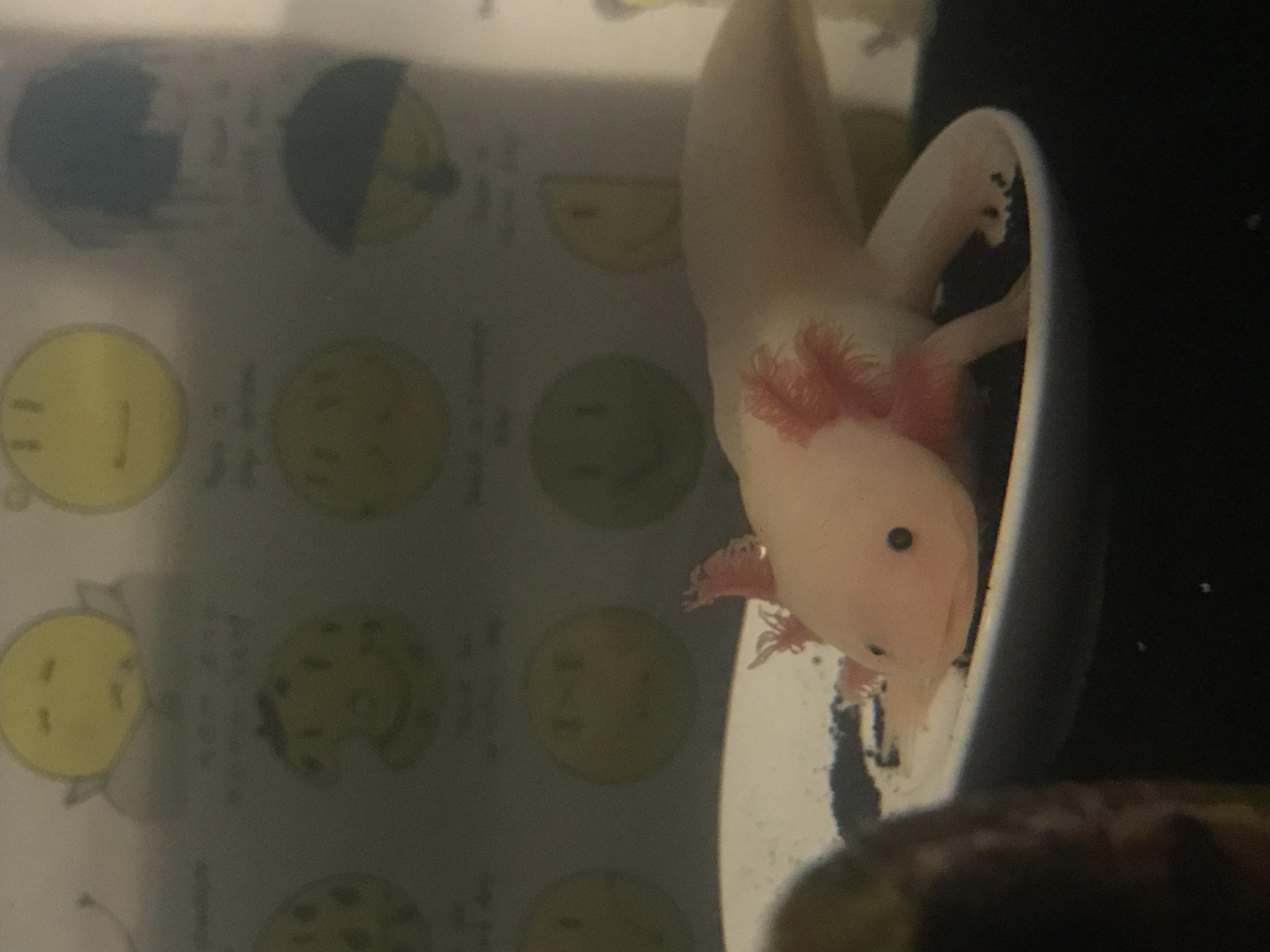 I’ve had Cthulhu for almost a month. I got him on the 10th of February. He’s gotten really big, really fast and was pretty big when we got him. He’s 4-5 inches long and he’s in a 20 gal. Long. I try to keep his tank between 60-65 degrees Fahrenheit. He was eating bloodworms but now he eats primarily Nightcrawlers every other day and pellets almost everyday. Sometimes I give him blood worms but not often anymore. I’ve been worried that I switched him to worms too soon. I also worried about him getting stressed due to poor water parameters. I’ve been fighting my parameters for almost two weeks now. I don’t think my filter is working enough for him. It’s for a 20, and was working fine until he got bigger. I’m working on getting another filter but the ammonia levels have been at the 1.0-0.50 range for a while. I’ve been doing partial (25%-50%) water changes for almost a week trying to fix it but it’s not working. I can’t tell if he’s sick or not. This is my first axie and I’m really worried that I’m not doing something right.