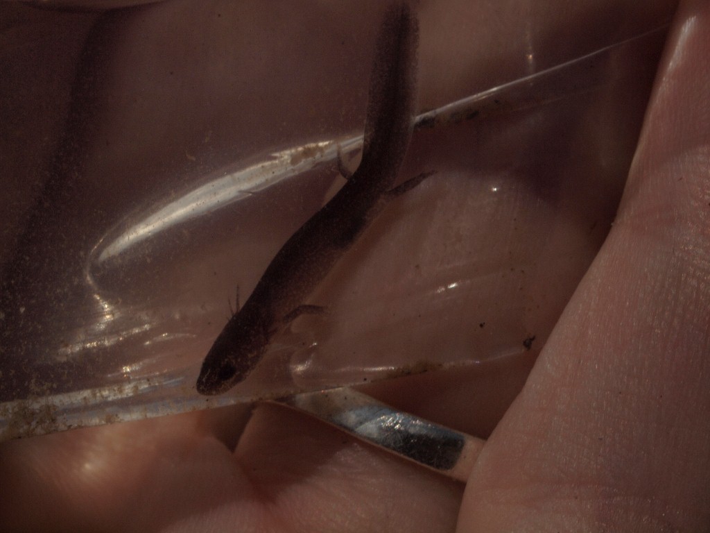 Another weekend of field work has led to finding this little guy in one of the leaf litter traps I put out. I'm at a loss as to what species it is. The head seems very blunt for it to be a Eurycea, but I'm not sure and I'm only just getting my footing in IDing larval stream salamanders. The site is a rather shallow, sandy/pebble bottom stream in a mixed hardwood forest. It's a very hilly place. We've found E. cirrigera and guttolineata there, as well as Desmognathus sp. and Pseudotriton sp. some years before. Any ideas? Please let me know what characters you are basing your suggestion on so I can look for similar traits in the field. I apologize for the poor quality of the pics, I was being swarmed by mosquitoes and the little guy wouldn't stay still for very long.