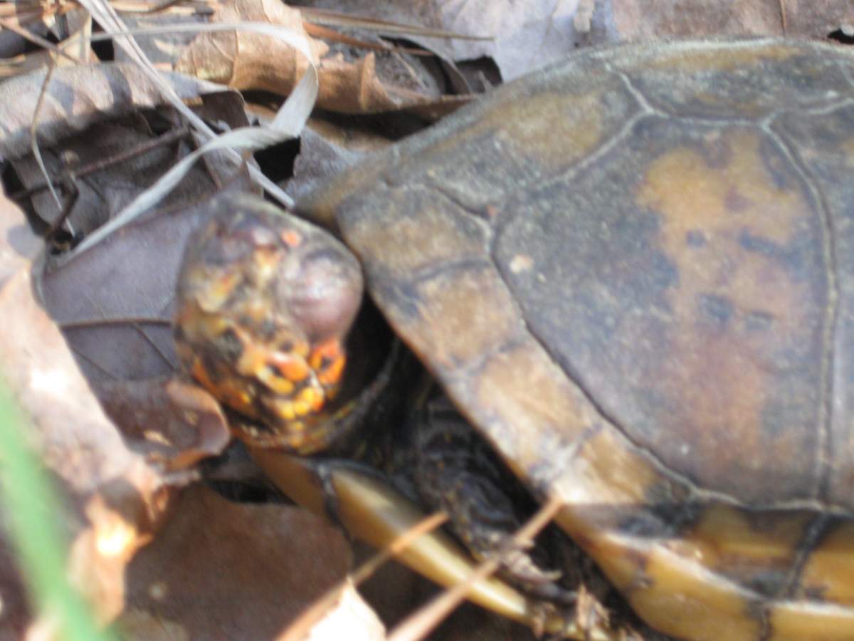 Second trough: unfortunatley, my efforts were impeded by my aunts dog, Weaver, who refused to stay home (I think she scared off a lot of critters). I had heard Pseudacris nigrita (Southern Chorus Frog) and Pseudacris crucifer (Spring peeper) calling from this area the night before. Unfortunatley, I didn't see any egg masses but I did manage to catch/see tadpoles that looked like they belonged in hylidae. The only other find was an adult box turtle that wouldn't open it's eyes and made me think it was blind (I waited and it opened them later). Amaizingly, the dog didn't bark at the turtle (she's known for using them as play things).