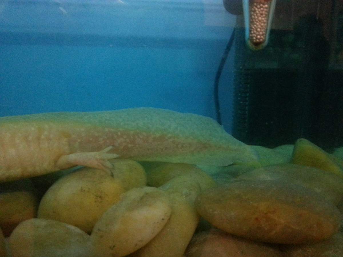 other than that he is fine, swimming happily and eating, wish i had more notice that he was coming i still need to add caves and plants to his home, so the tank looks pretty bare at the moment xD
