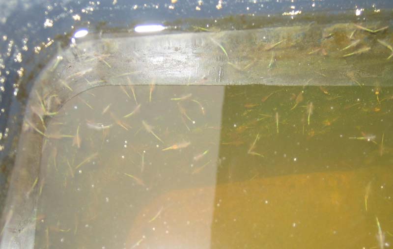 For all of you who want to provide new varieties of live feed for their animals. A short report on my experiences with growing adult Artemia (brine shrimp). You might want to give this a try. Inspired by info from the internet and literature I started two mortar tubs (60 l each) as Artemia growing facilities.