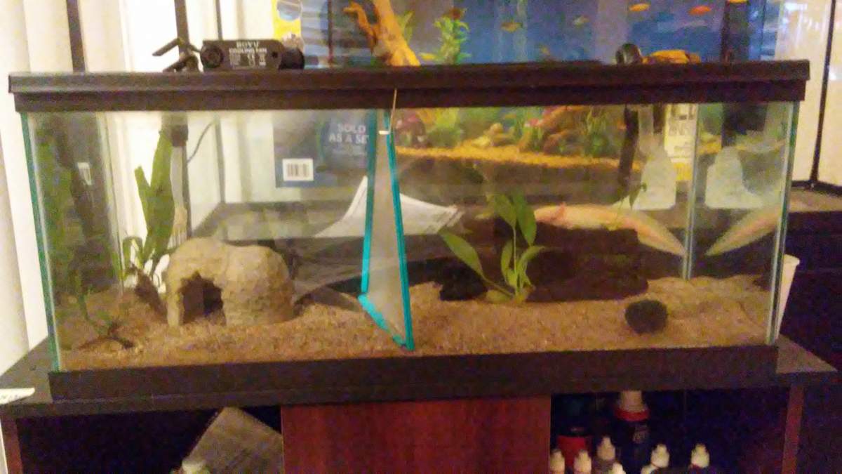 Now that you mention it, my water does move quite a bit. I have a fluval 206 canister hooked up to my tank and it creates a fair bit of movement, and I think my divider isn't helping. However he's been in that half of the tank for nearly two months, and he's had that filter for 3 months with me and many more with his previous owner. It never seemed to bother him before, could it really be the issue? I really hope the water flow isn't an issue, as I got a marineland c360 for the 60 gallon I bought today. I can't seem to get quality pictures out of my phone, but here's a look at what I've got going on.