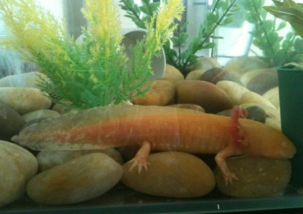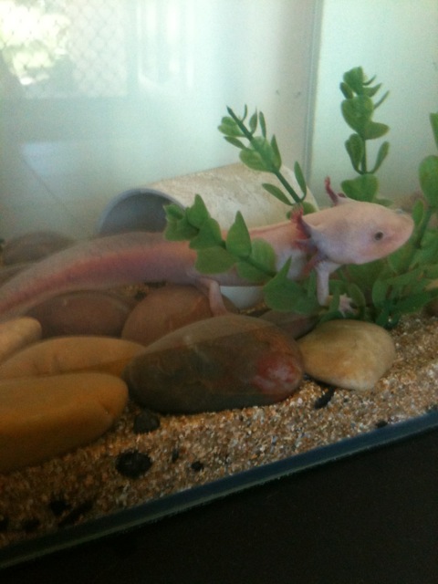 the white one unfortunately passed away. i probably do have a pic or video somewhere ... but when my golden one moves ill get a pic from behind! maybe ill have to change its name if its a female lol.