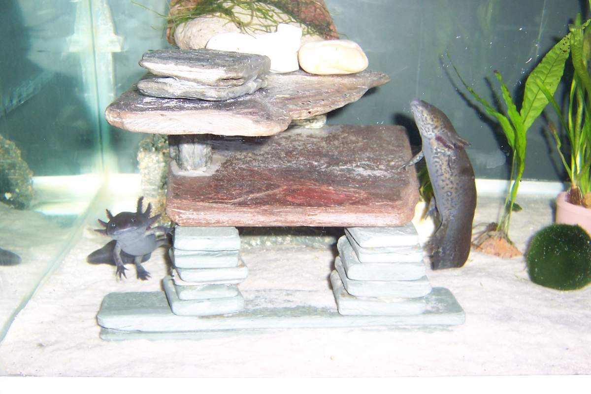 Great looking axies and habitat, I'm really liking the structure looks kind of aztec or mayan very appropriate for a mexican axolotl. Well done.