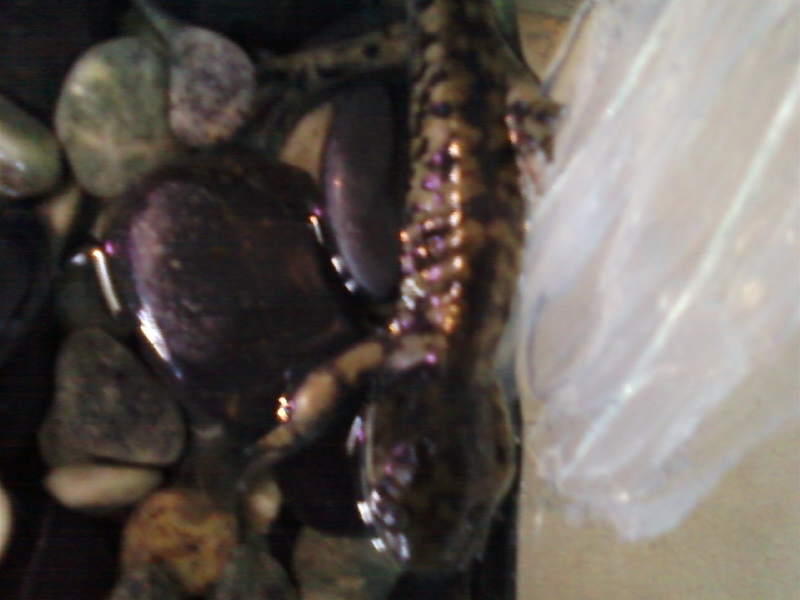 After looking at the pictures, it is as Kaysie and Justin stated. It needs to be moved to a terrestrial set up. The amount of water and lack of hides is definitely a contributing factor to the high stress levels of this animal.