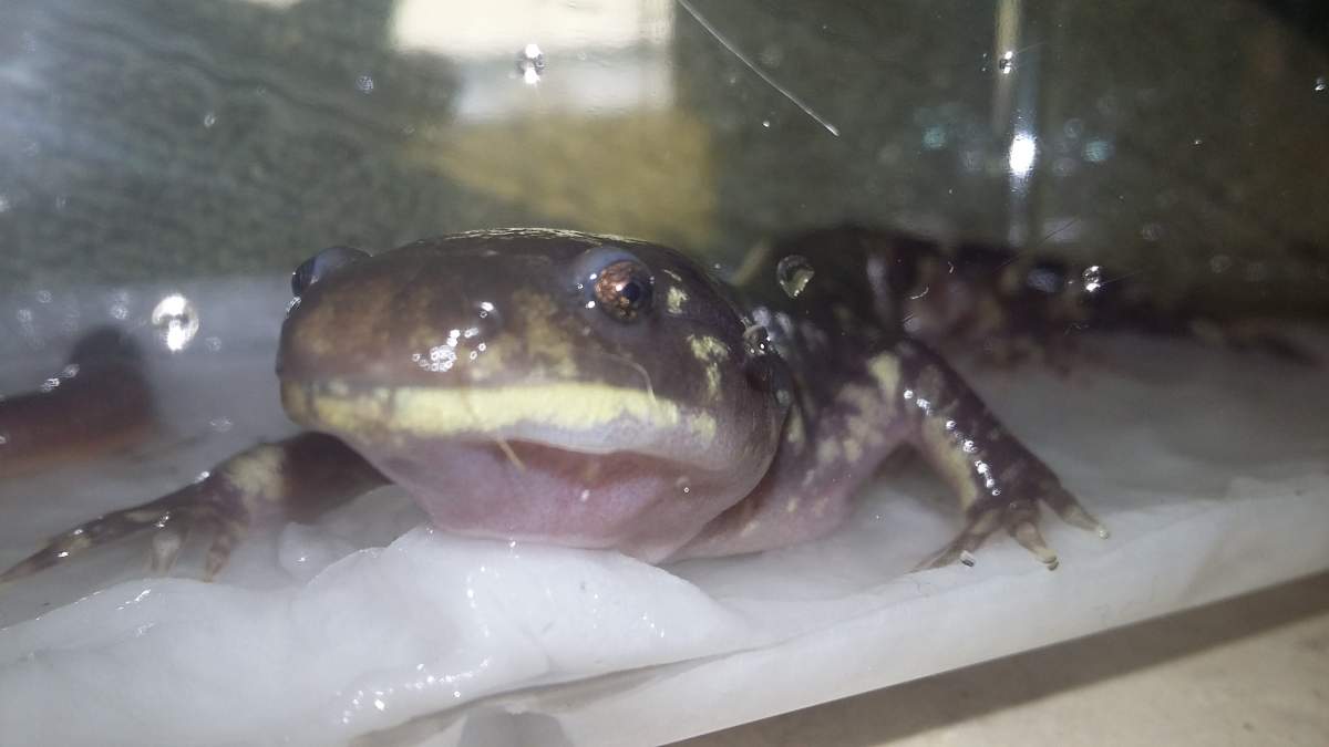 My morphed axolotl Logan has a pink underside from his chin to his vent area. He is just over a year old and went through his first shed two weeks ago. I'm not sure if it's just his coloration from being so light coloured or if there may be something wrong with him. I realize that most tiger salamanders have black stomachs so this isn't something common to see. I moved him from cocoa fiber bedding onto wet paper towels just today.