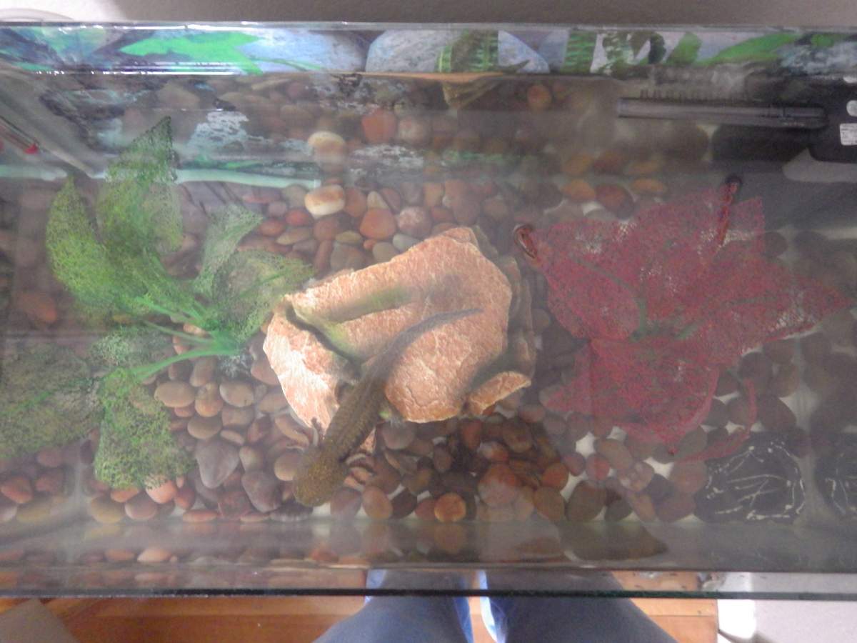On a side note, some of those stones could potentially be swallowed. Bare bottom or sand is a good alternative and will make cleaning easy and water quality will be easier to maintain :)