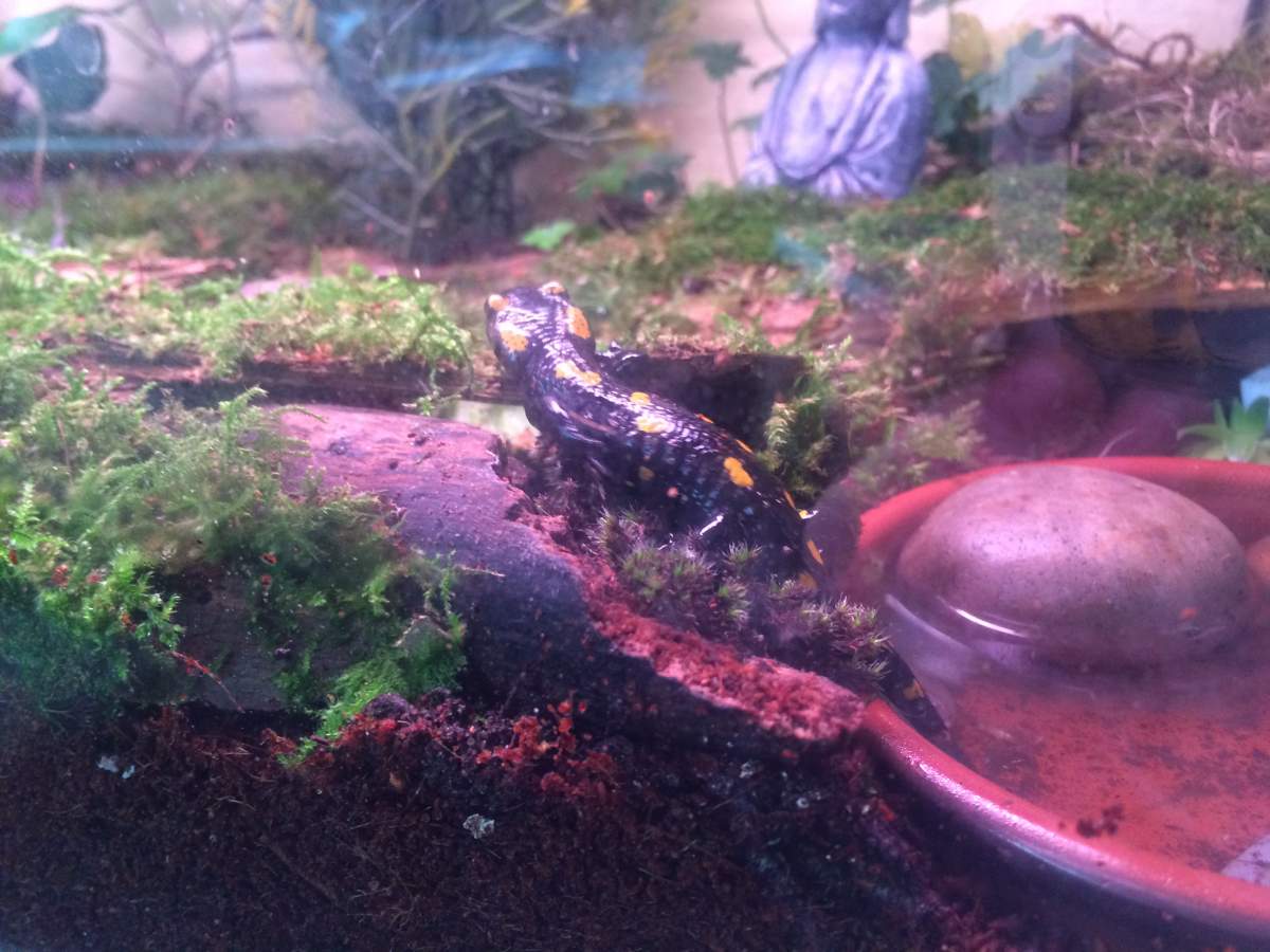 These pics are of one of my Salamanders. I took these the day I got two but this one was out hunting crickets. They arrived Yesterdy, Saturday 29th October. They are in hiding now as new to the tank and surroundings.