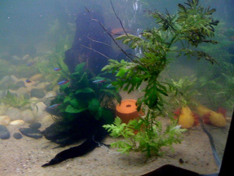 Here are some pics of my new tank setup I done a couple of days ago, a big improvement from what they had when I got them in September. All they has was river pebbles on a bare bottom tank and a couple of terracotta pots. They are much happier here in the planted tank. And are crazy about blood worms.