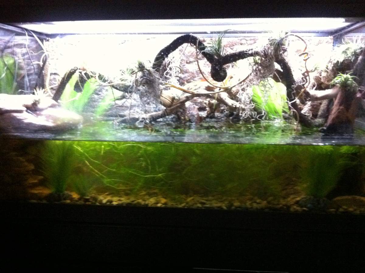 the tank picture is a bit old as I'm actually in the process of getting more plants. The cliff to the left actually hides the filter and has a ledge that breaks the flow of the water so there isn't much surface movement. Anyway this is just my way of introducing myself to the forum and saying Howdy!