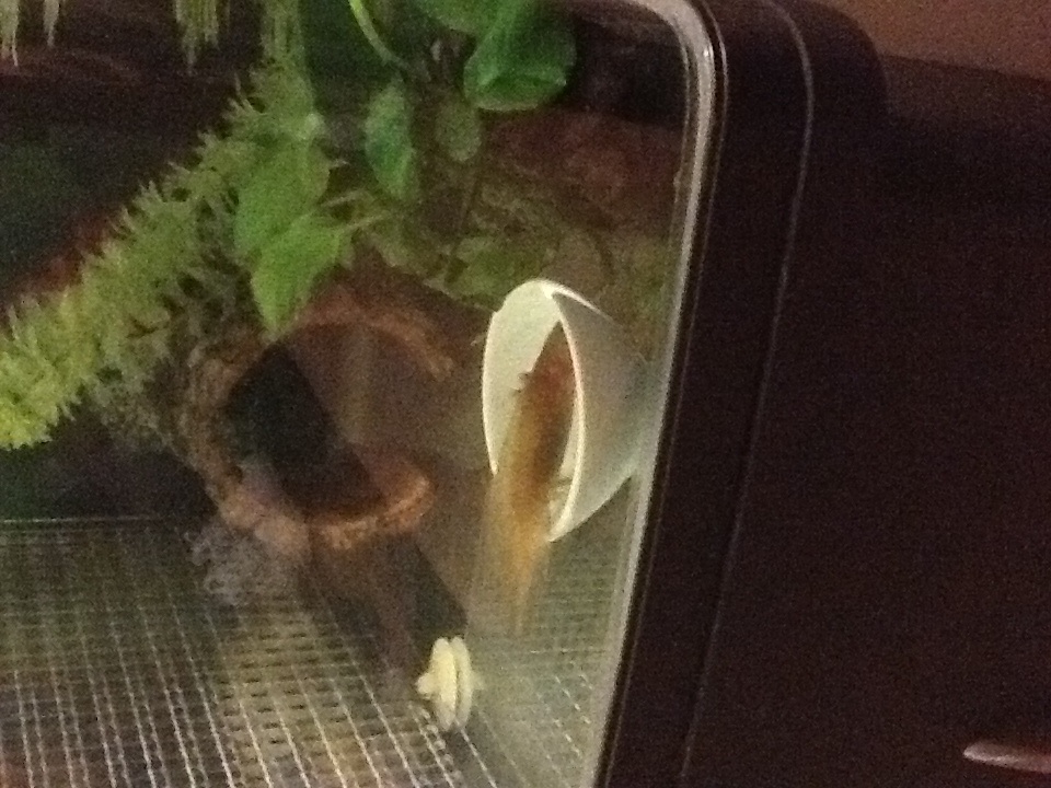 Hi all, put new feeding bowls in today - as you can see Frodo was straight in, head down, tail up. Gandalf however, is somewhat slow on the uptake and couldn't find the food for a while, he eventually worked it out after much searching around the tank .... Lol