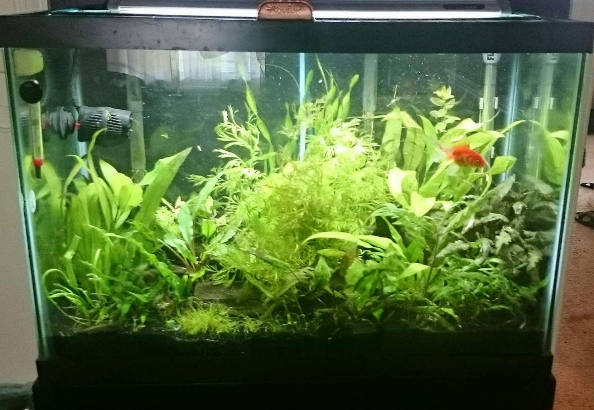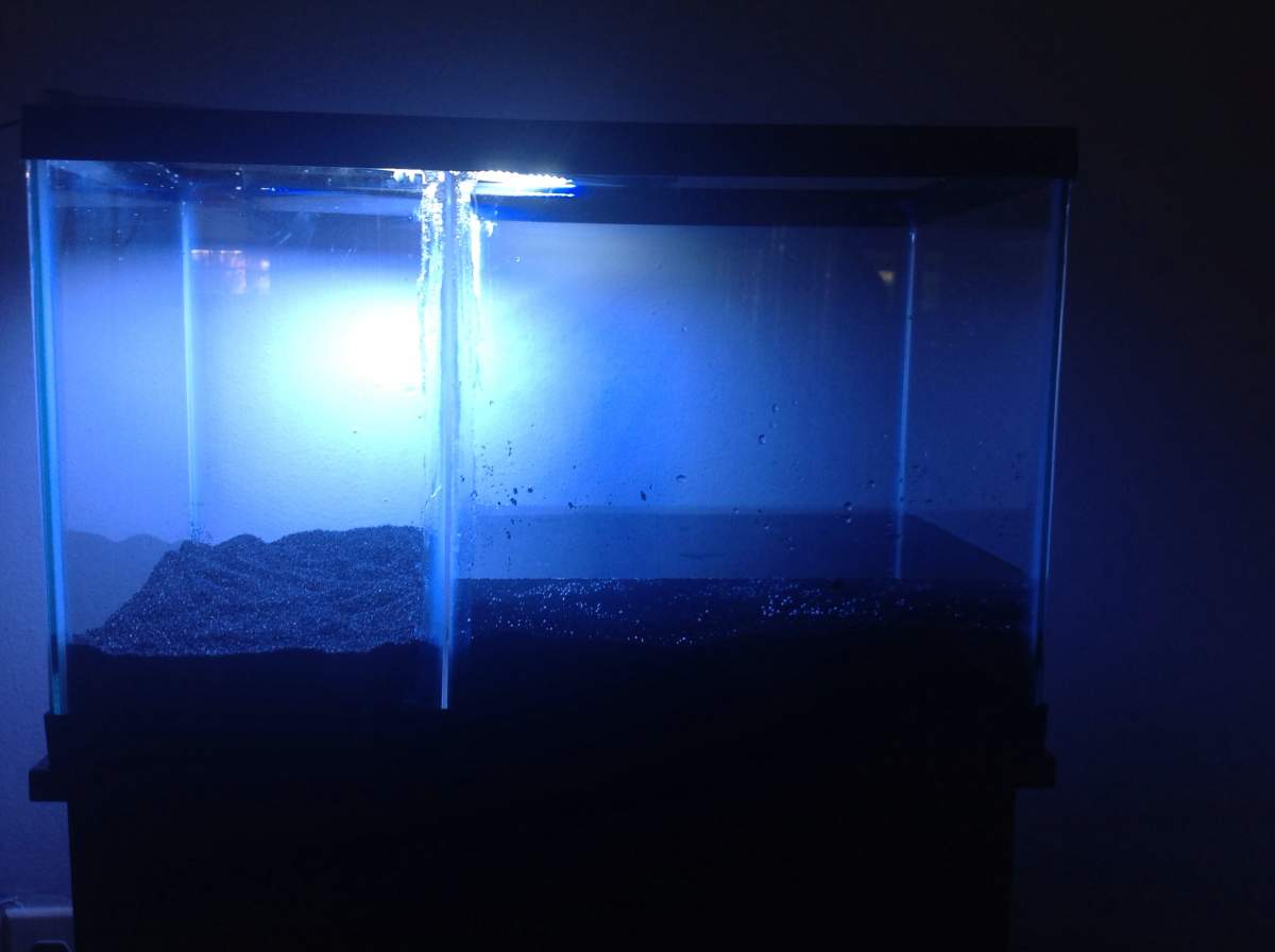 Hello. I just "built" a new tank. I'll say it's about 4 or 6 gallons. It's a 10 gallon tank that I split 3/5 of the way. I want one side to be aquatic, the other semi aquatic like a paludarium almost. Ideally I want the semi aquatic side to be the 4 gallon, and the aquatic to be 6. I plan to put various plants on both sides. I have many planted aquariums.