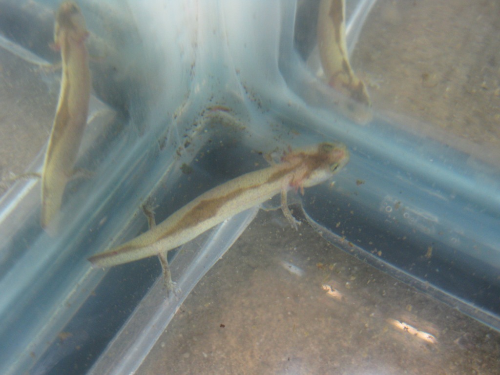 I have a Gyrinophilus porphyriticus porphyriticus (Northern spring salamander) larva that seems to have an odd coloration to it. At first I thought it was diseased because of it so I seperated it but it's been like this for qutie a few months now, at least 4 ot 5, so now I am not so sure it is. I was just curious if anyone has seen this type of coloration before in this species before or heck, any other larva?