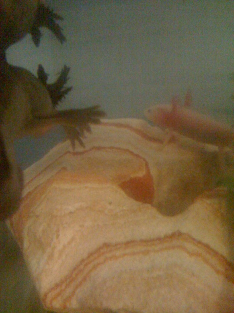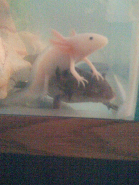 One of my axies & my tiger larvae chillin , believe it or not they have never nipped or even wanted to , at each other at all , they are always together in the tank posted up lol