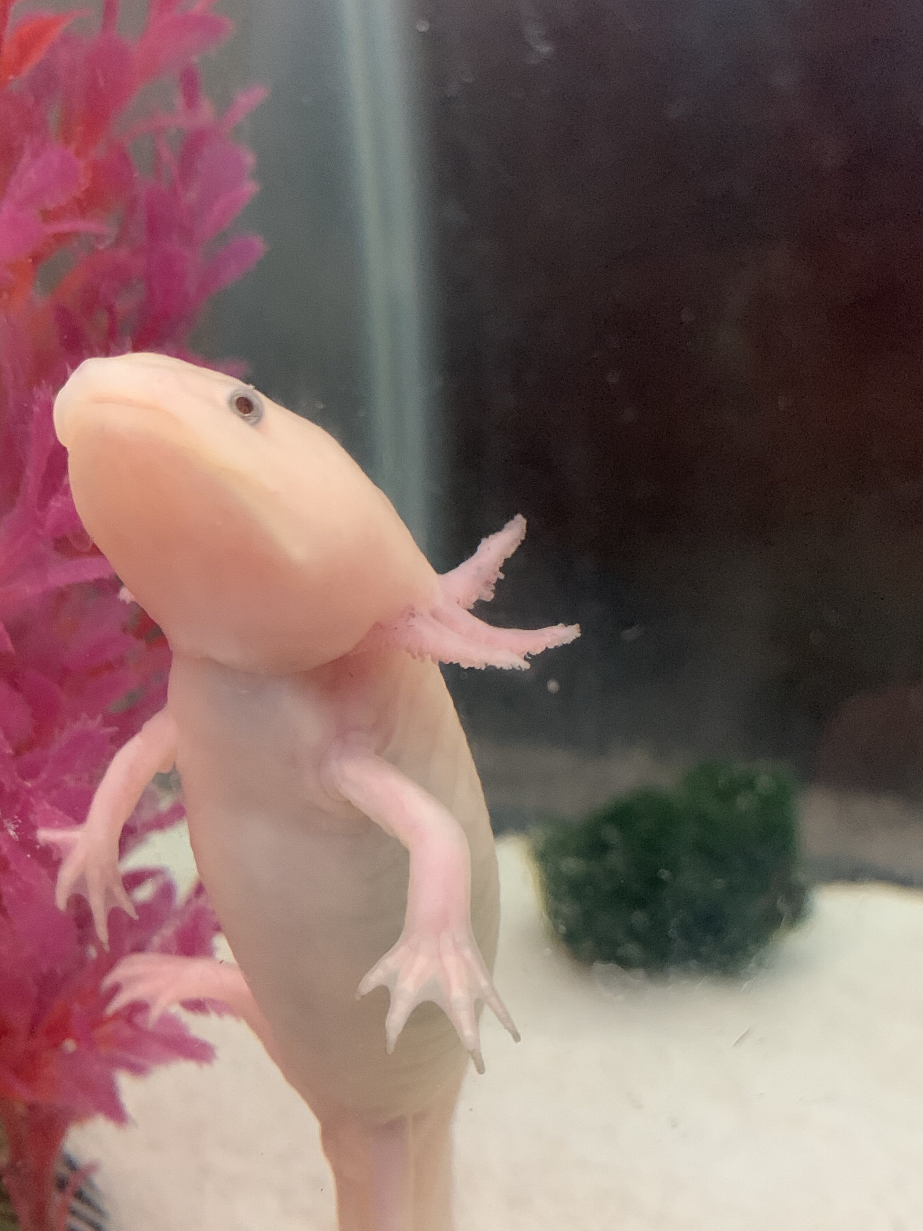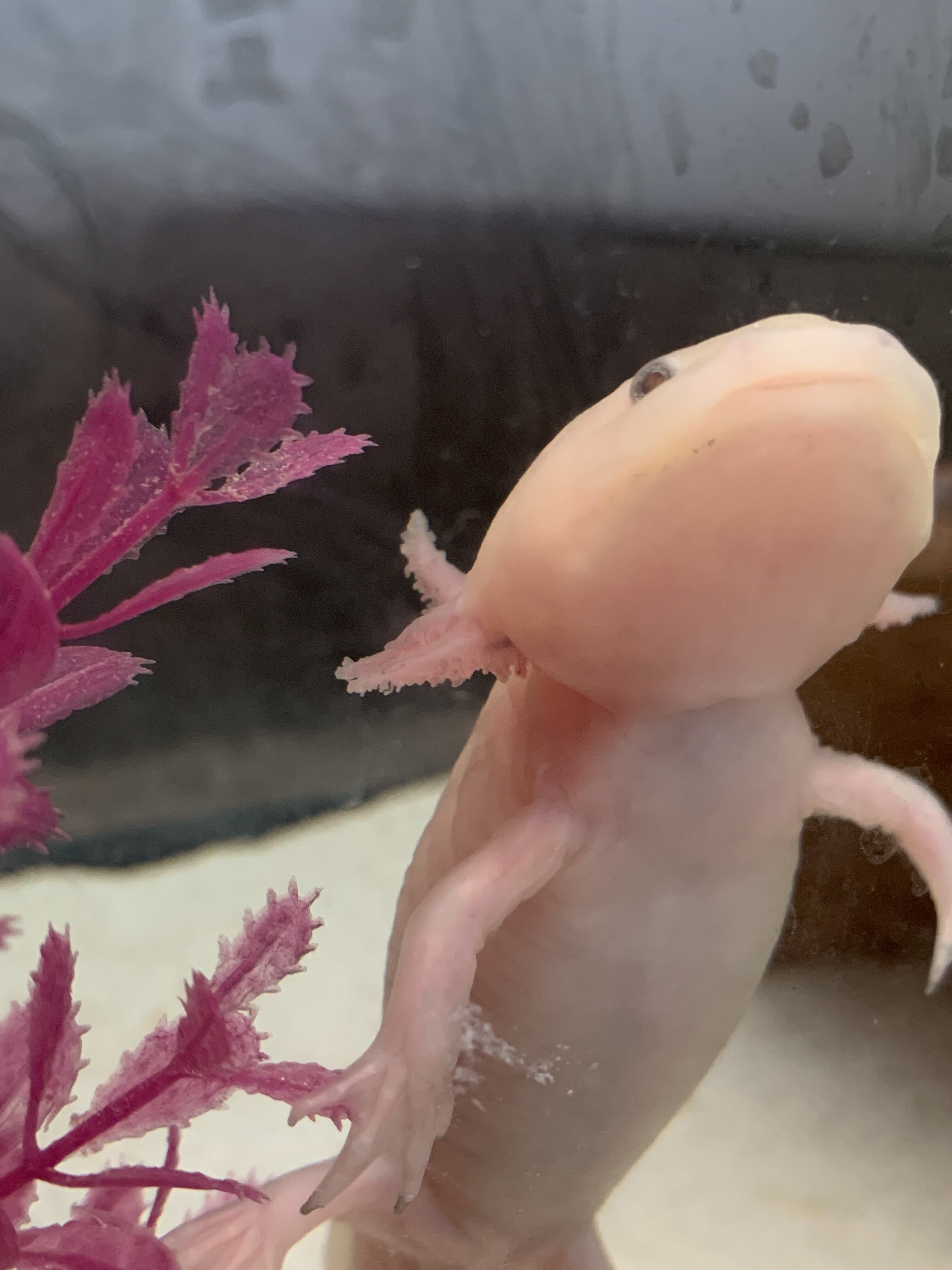 As for her gills, it looks like the white stringy filaments are gone or fell off and she just has little tiny pink ones now. I’m hoping this is a good sign?