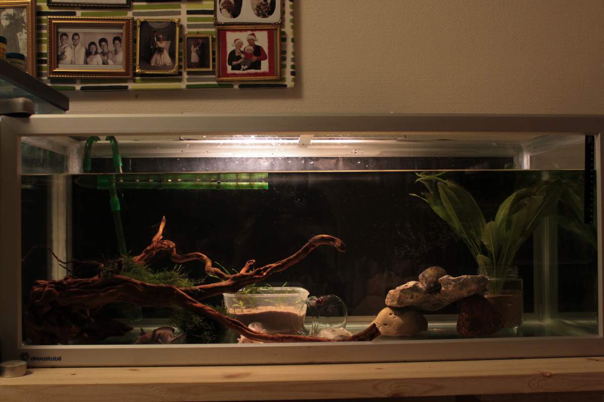 After seeing so much fun, multicoloured sand I now want to tear mine up and redecorate completely haha.. however this is my 10g currently!