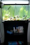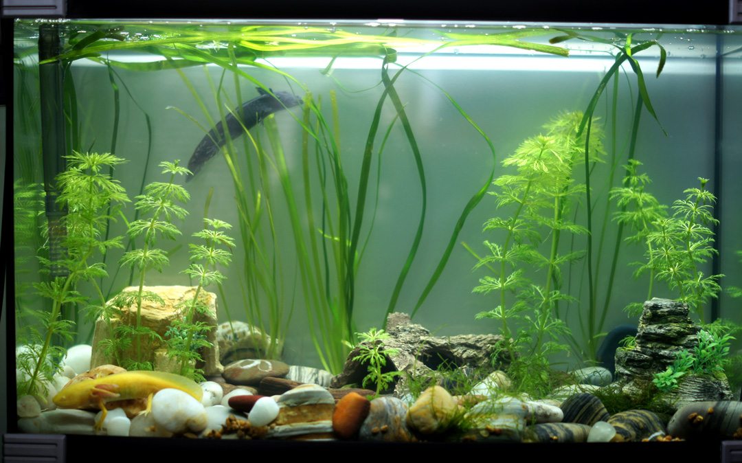 65L one, 2 little axiesnot sure of my pebbles - the guys seem to enjoy them - climbing over, nosing all the time - but it's quite hard to clean, so I may reduce the number of pebbles and fill in some sand in the middle... still learning!