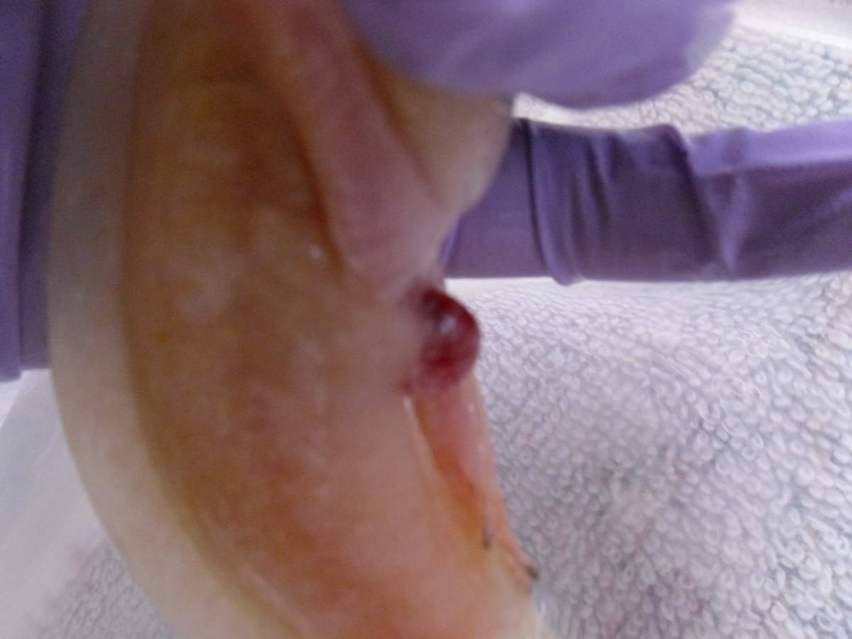 I have already popped him into a small tub of fresh dechlorinated water and put him in the fridge on the warmest setting. should i put some rubber gloves on and maybe gently try pushing it back in or should i leave him to settle in the fridge for a few days 1st?