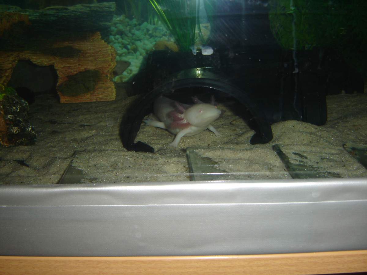I am not sure she is just under 7 inches, I think they are at least 6 months old, I only think she is female this is based on her having a more rounded body than my leucistic, she has darkened finger tips but I understand this does not always represent sexual maturaty