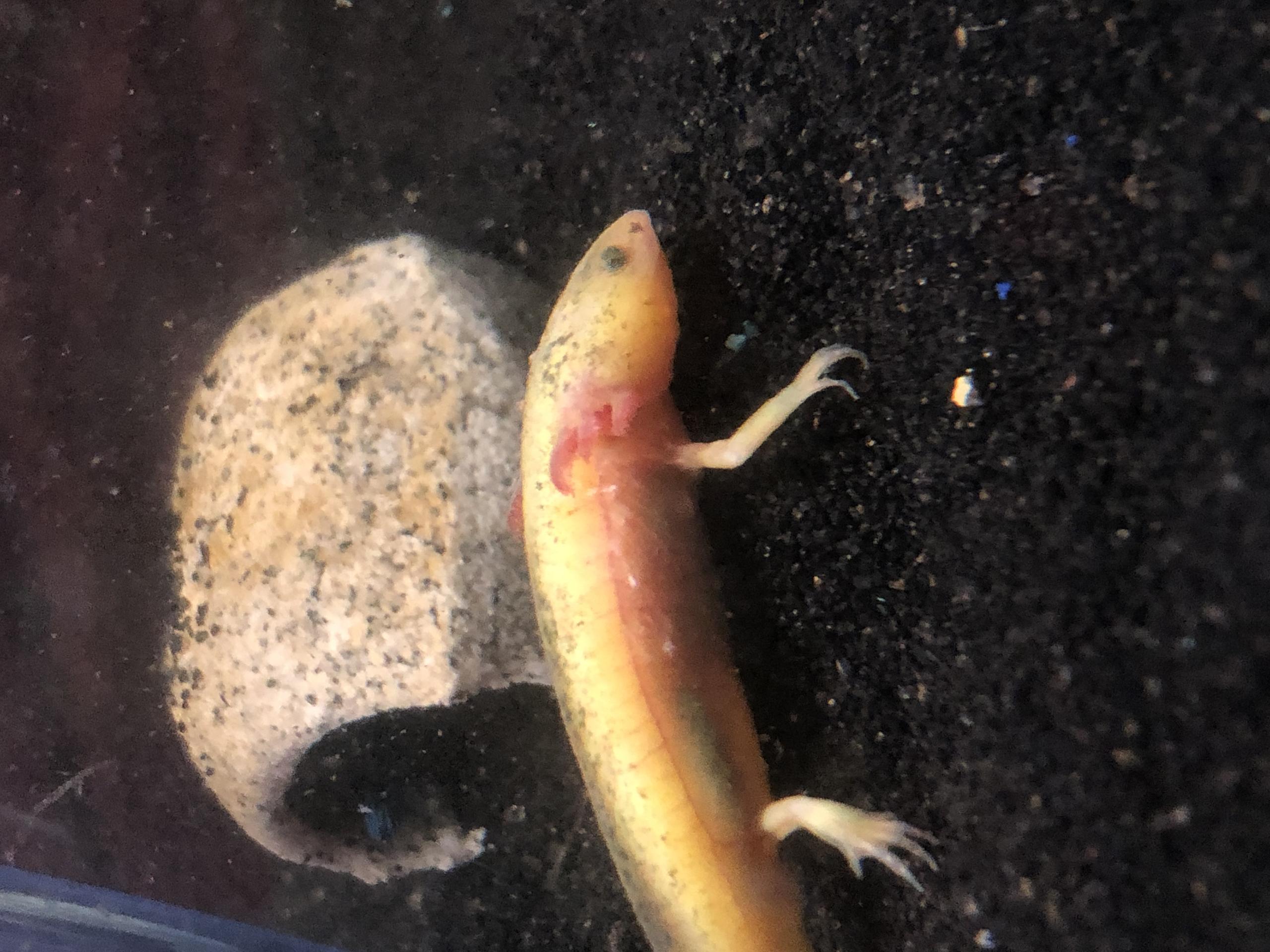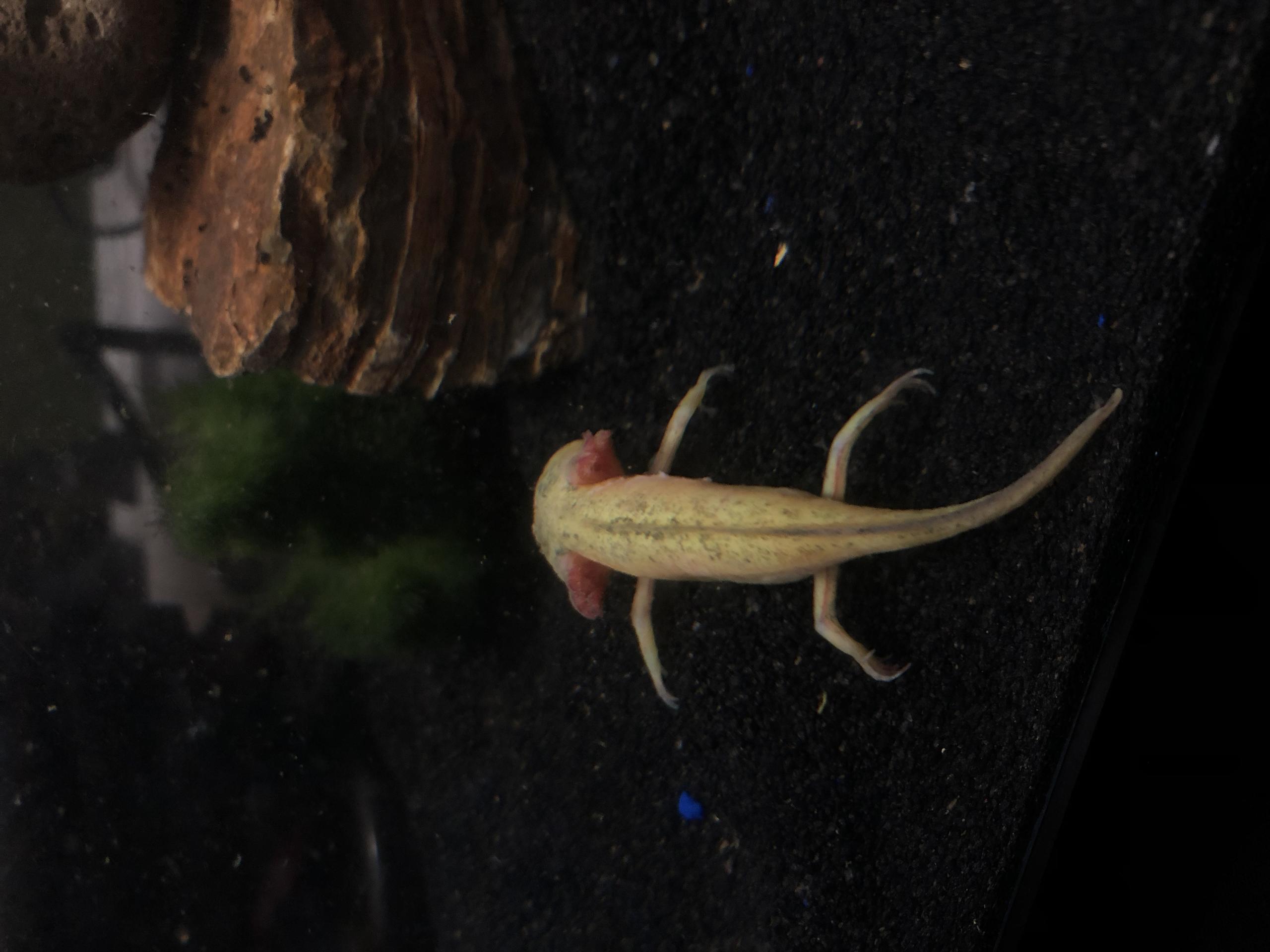 Hello everyone! I have what could be a problem or genetic defection, and was wondering if it was a problem I could deal with or if there was any way to help. His gills are very short, and aren’t nearly as ‘floofy’ as my two adults. He’s a dirty leucistic GFP, and is about almost 3 inches long. There’s an air pump in the tank itself. Its a slight dirty because I just fed him. He also has abrasions on his side, and I’m trying to find the source of any problems he has. His gills used to be more floofed out. He’s currently in a 5 gallon, temporarily while i try to figure out what could be wrong with him. He is fed brine shrimp and beef heart as his main diet, and was in a tank with a baby betta fish for a few weeks. I’m worried he might be sick, or the Betta might have got at him while they were in the same tank. Note that this is not my Axie, but one of my friend’s. I just have this account on here and know you guys are great at this sort of thing.