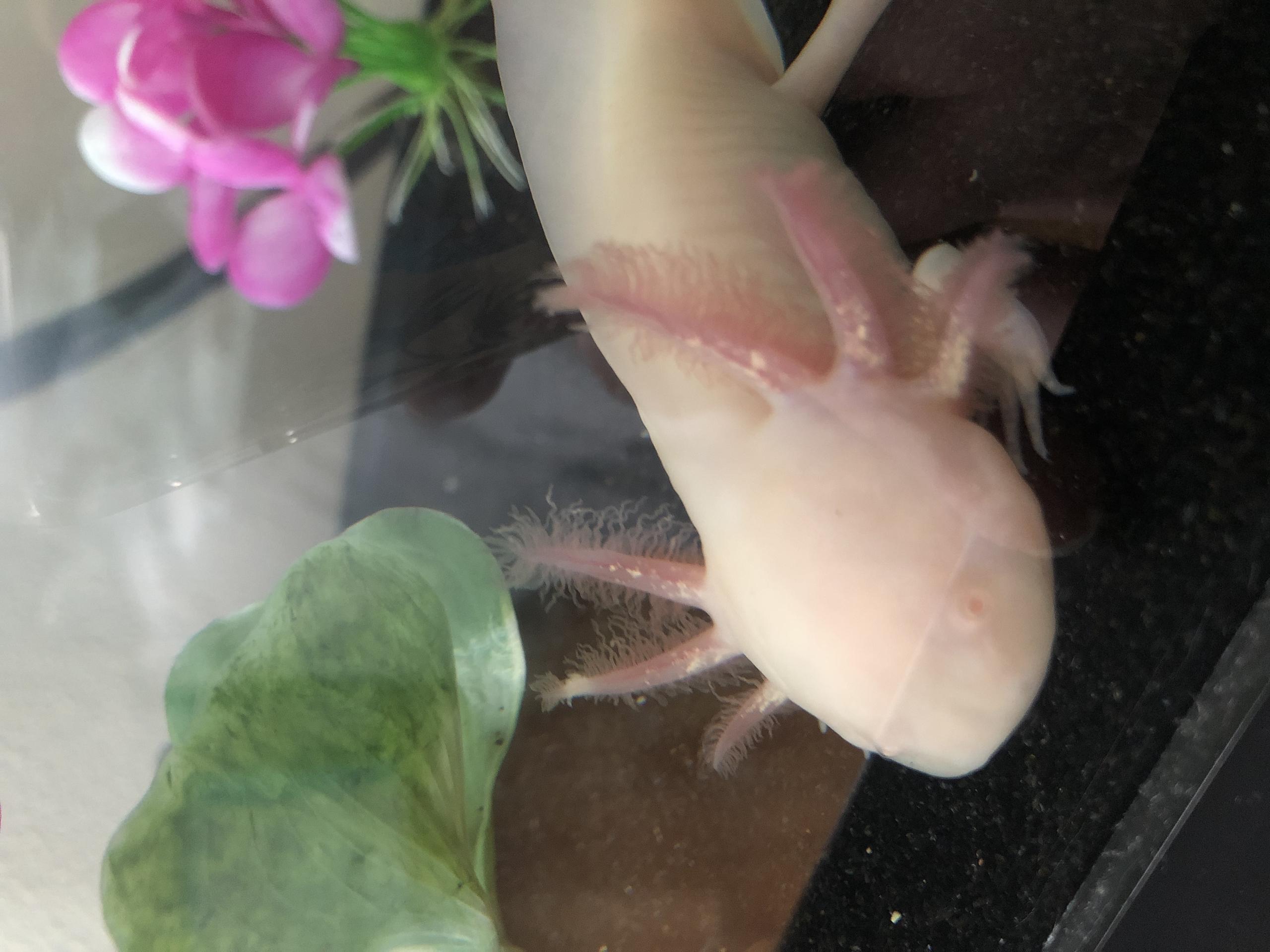 I noticed a strange white patch that popped up on my albino axolotl’s gills about two days ago. I don’t know if this is a fungus or something else. She isn’t showing any signs of stress like a curled tail or gills. I have her in a 20 gallon tanks and I clean it once a week. The water is approximately 65 degrees and the ammonia is less than .02 ppm. Any advice?